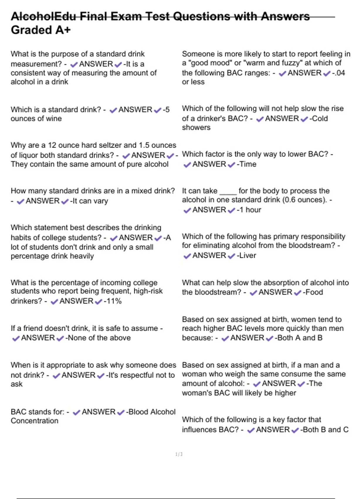AlcoholEdu Final Exam Test Questions with Answers