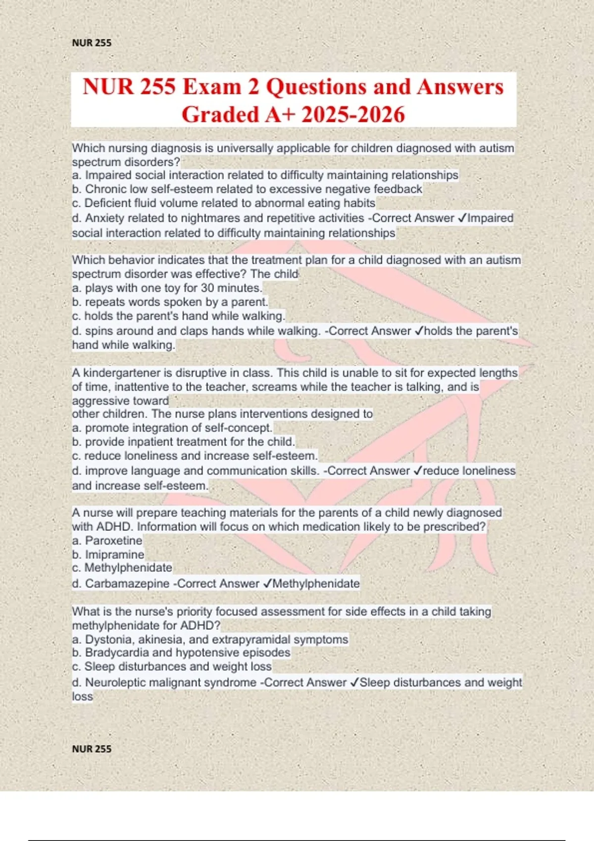 d. ADHD. -Correct Answer ✔ADHD