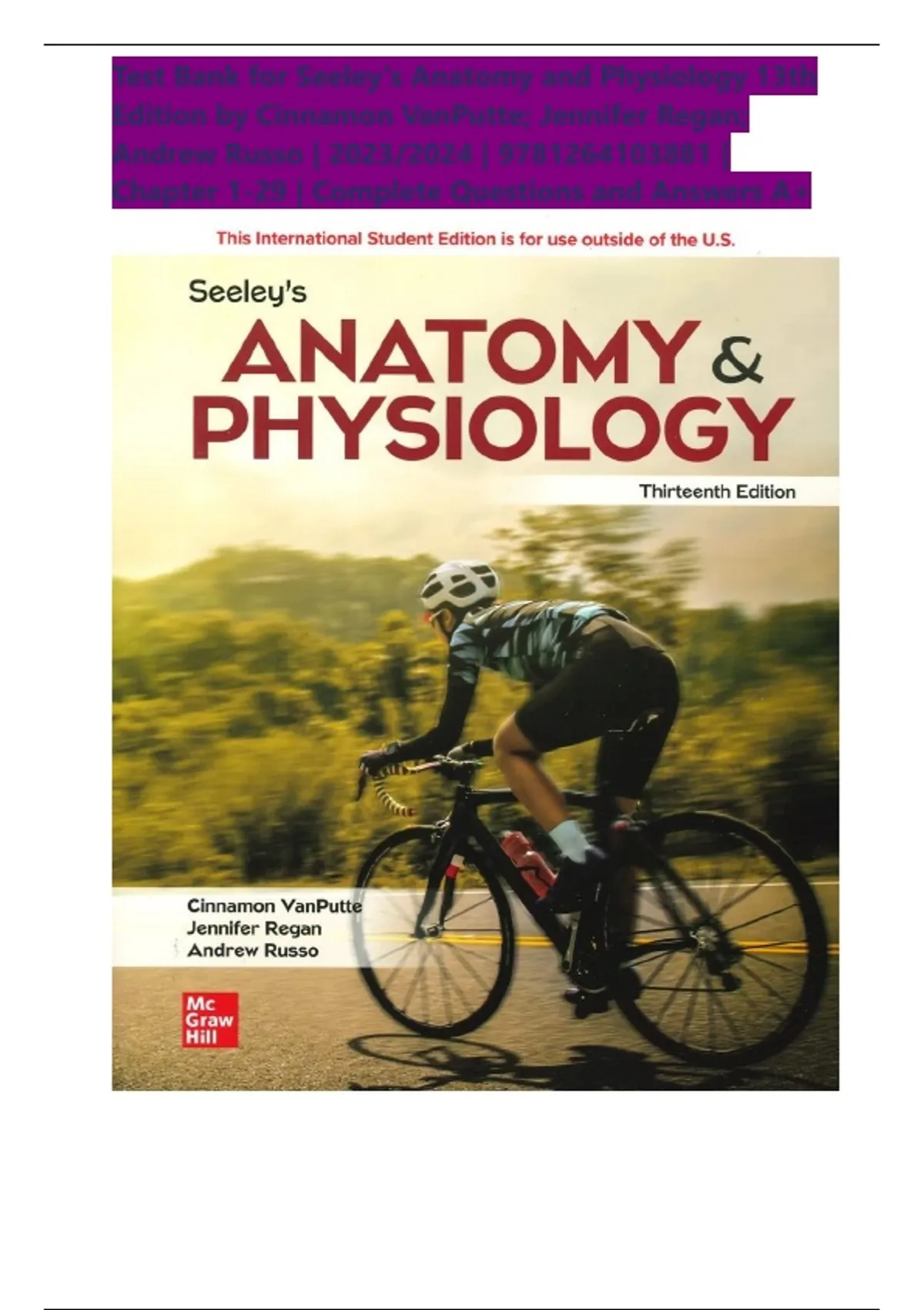 Test Bank for Seeley's Anatomy and Physiology 13th Edition by Cinnamon VanPutte; Jennifer Regan; Andrew Russo | 2025/2026 | ISBN: NO 9781264103881 | Chapter 1-29 | All Chapter |Complete Questions and Answers Guide A+