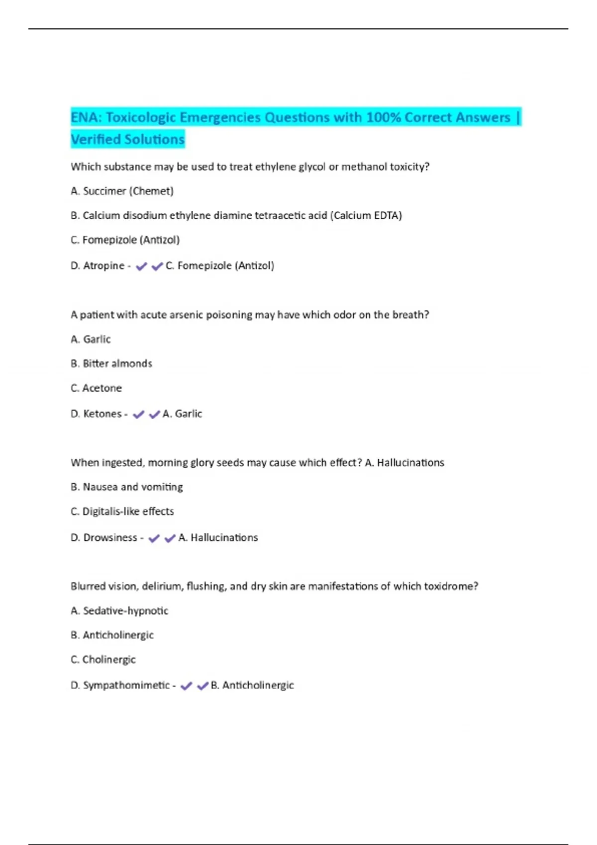 ENA: Toxicologic Emergencies Questions with 100% Correct Answers | Verified Solutions