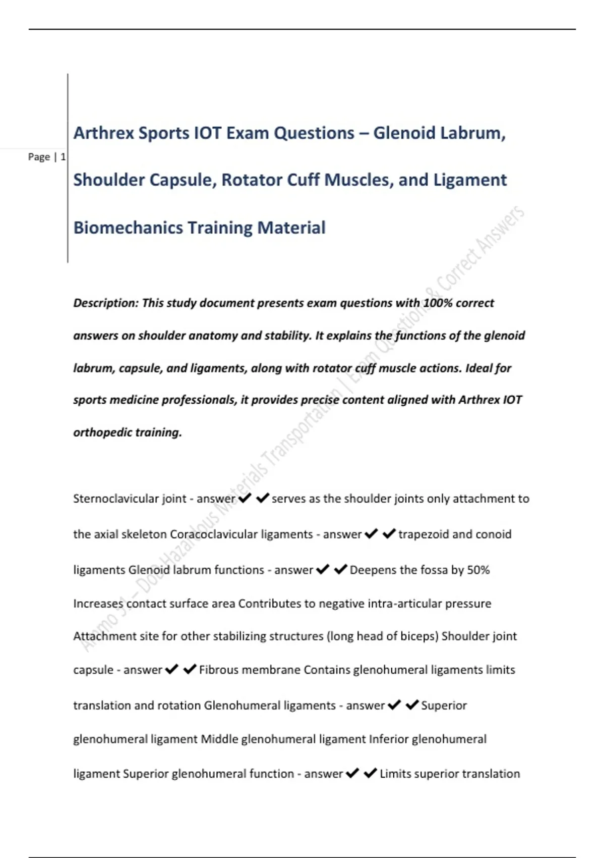 Description: This study document presents exam questions with 100% correct