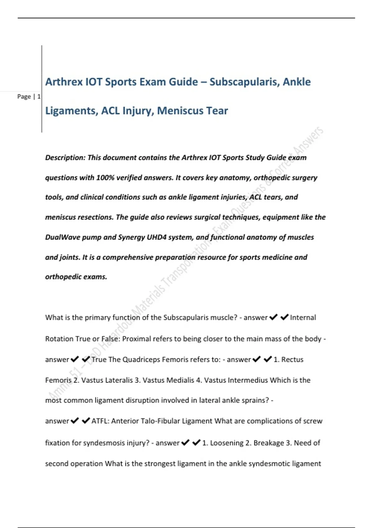 Description: This document contains the Arthrex IOT Sports Study Guide exam
