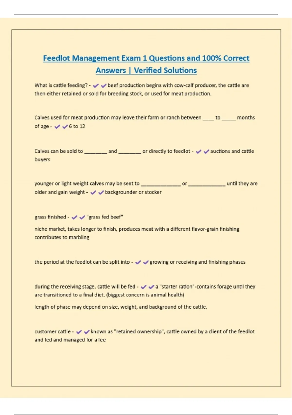 Feedlot Management Exam 1 Questions and 100% Correct Answers | Verified Solutions