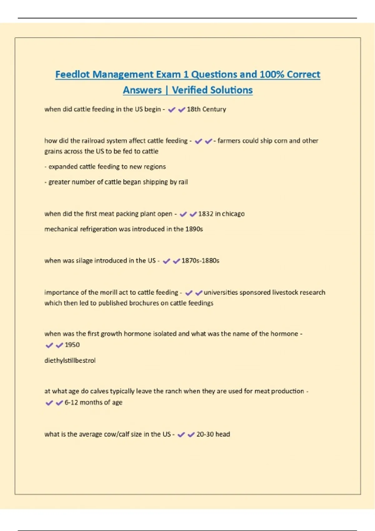 Feedlot Management Exam 1 Questions and 100% Correct Answers | Verified Solutions
