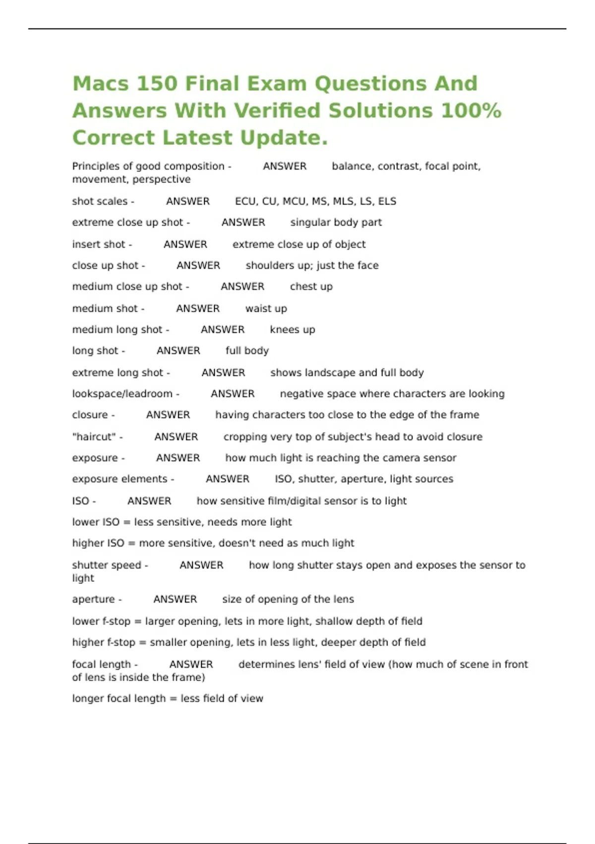 Macs 150 Final Exam Questions And Answers With Verified Solutions 100% Correct Latest Update.