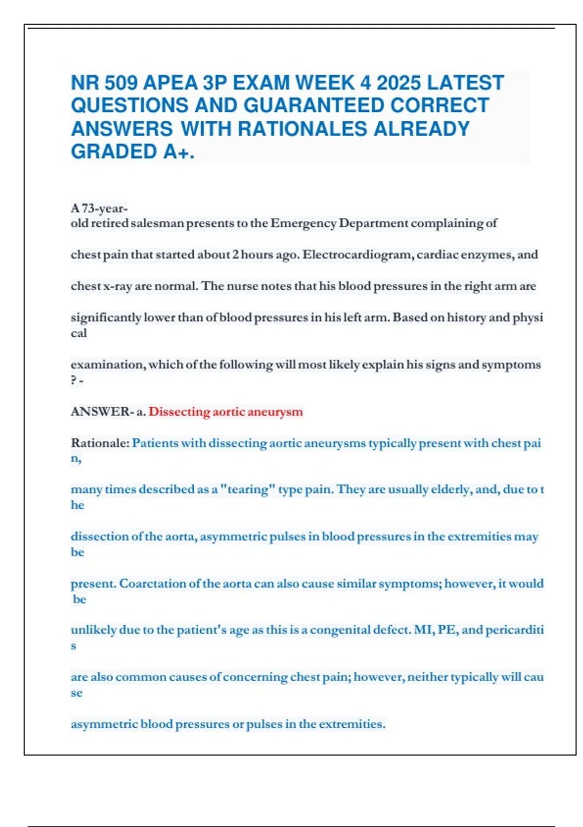 NR 509 APEA 3P EXAM WEEK 4 2025 LATEST QUESTIONS AND GUARANTEED CORRECT ANSWERS WITH RATIONALES ALREADY GRADED A+.