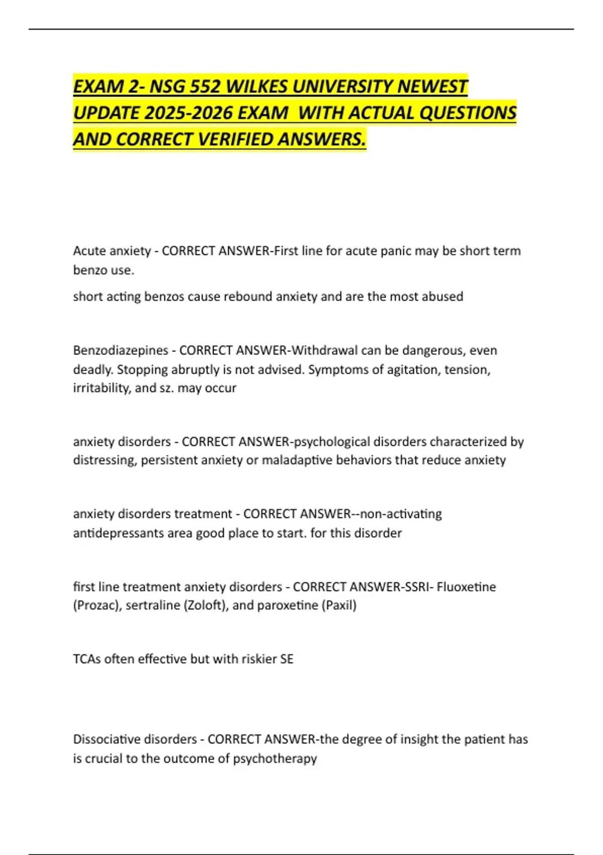 EXAM 2- NSG 552 WILKES UNIVERSITY NEWEST