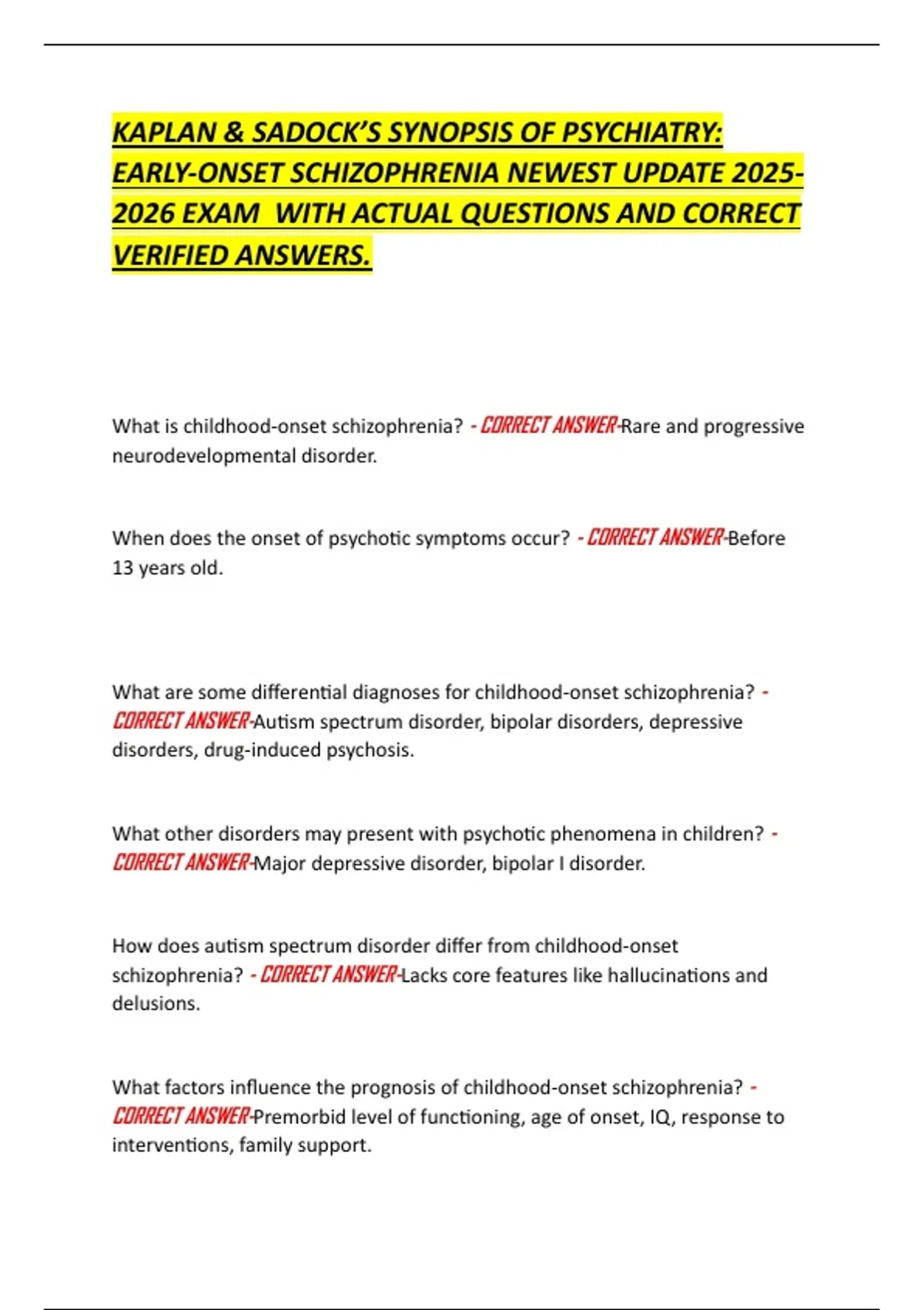 What is childhood-onset schizophrenia? - CORRECT ANSWER-Rare and progressive
