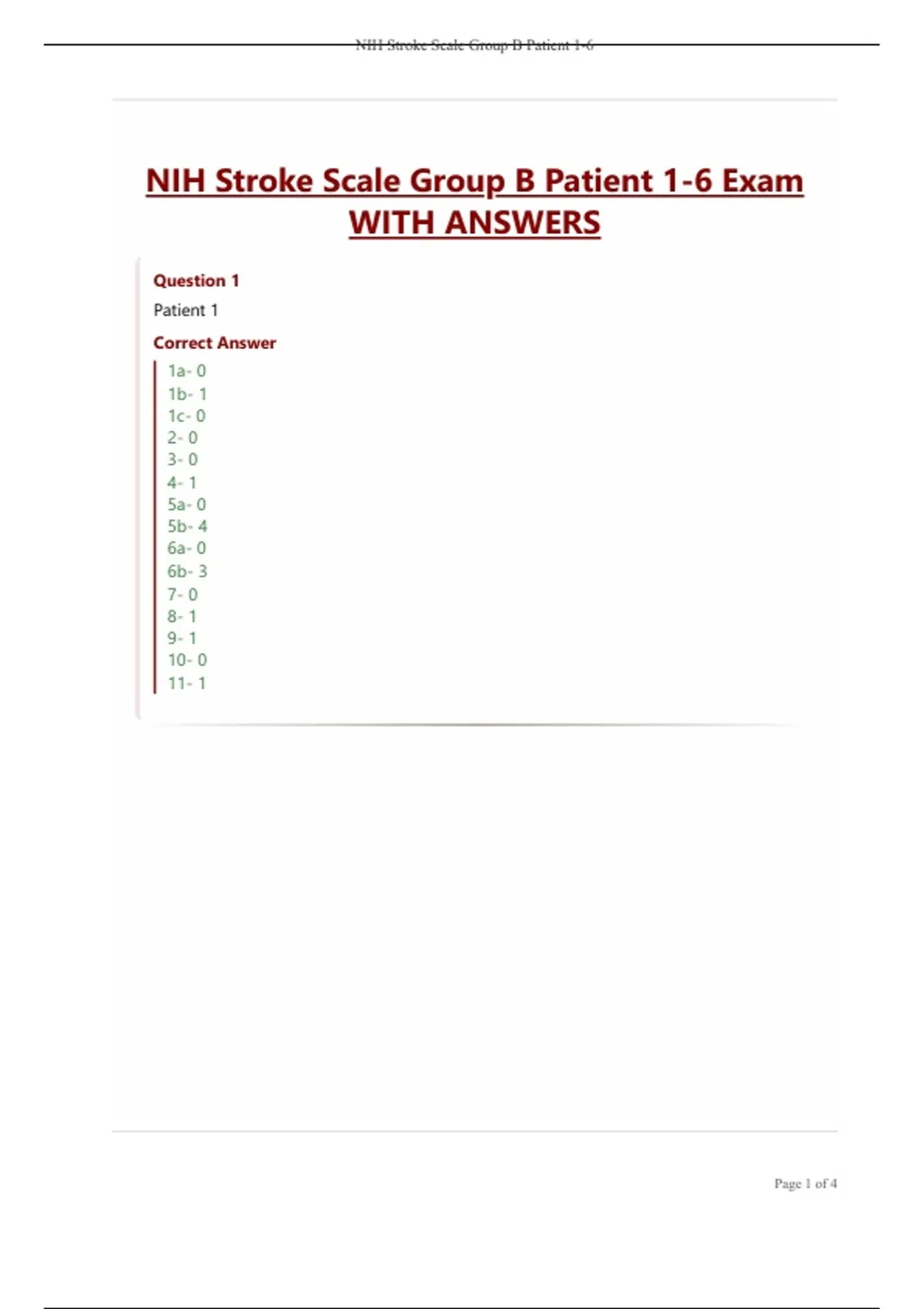 NIH Stroke Scale Group B Patient 1-6 Exam WITH ANSWERS
