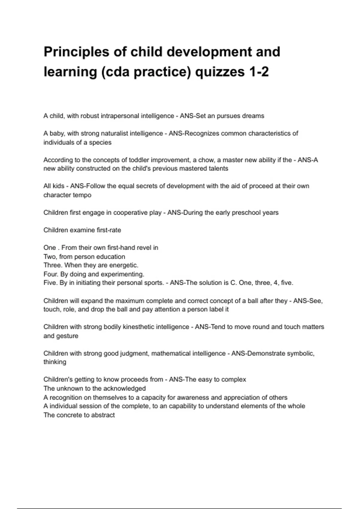 lesson 2 quiz - ANS-Child improvement principles of infant improvement, lesson two quiz