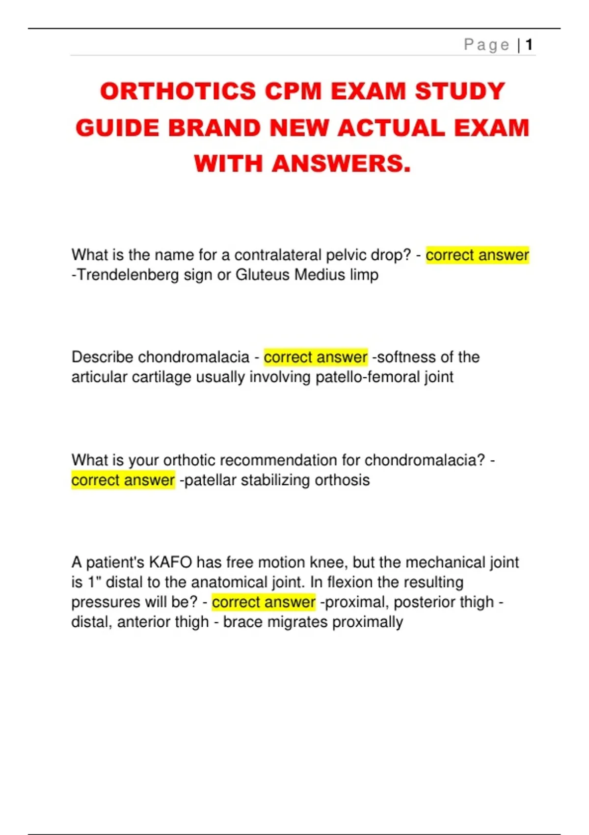 ORTHOTICS CPM EXAM STUDY