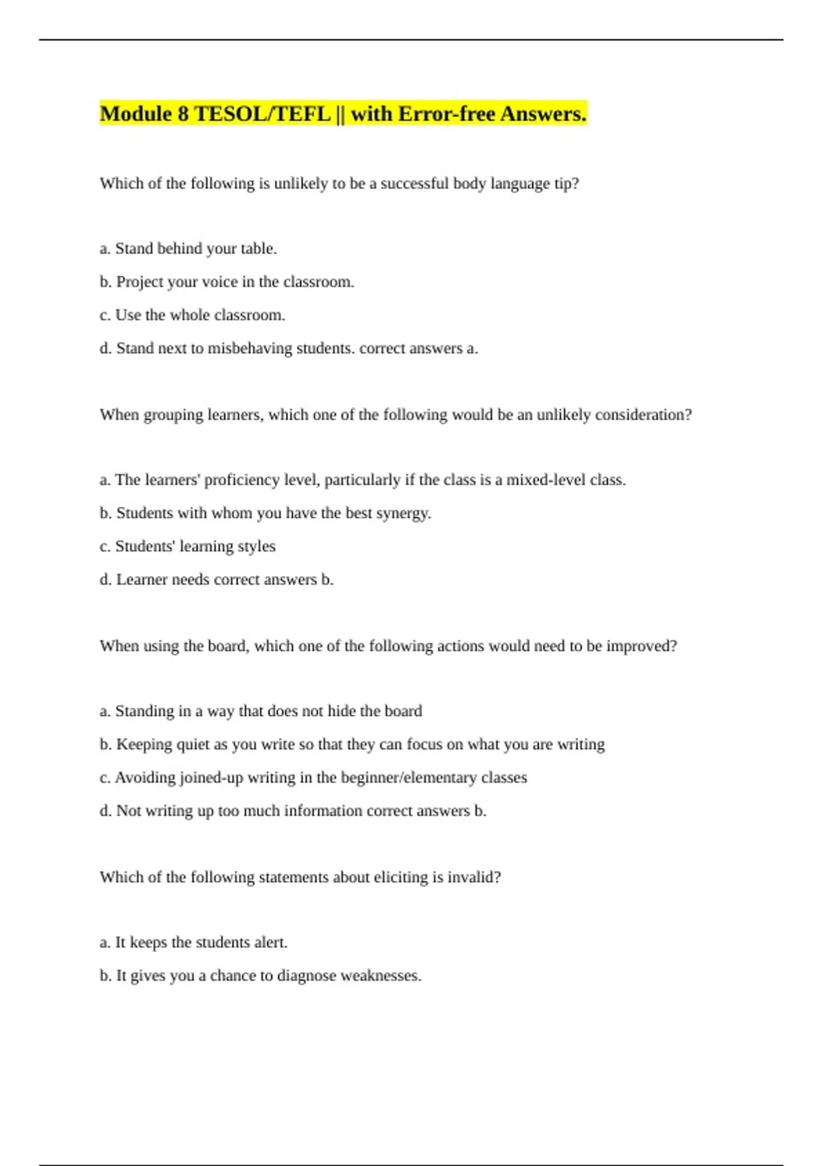 d. Learner needs correct answers b.