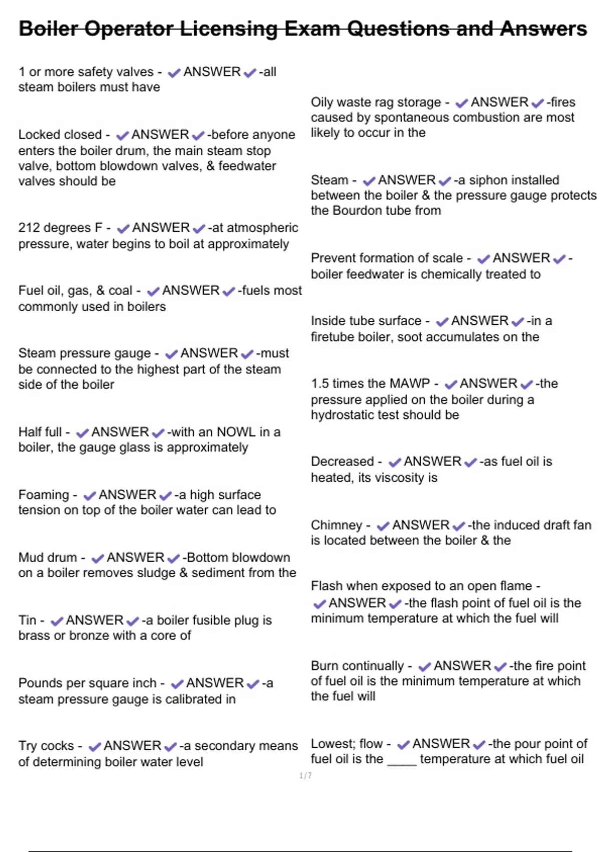 , Boiler Operator Licensing Exam Questions and Answers