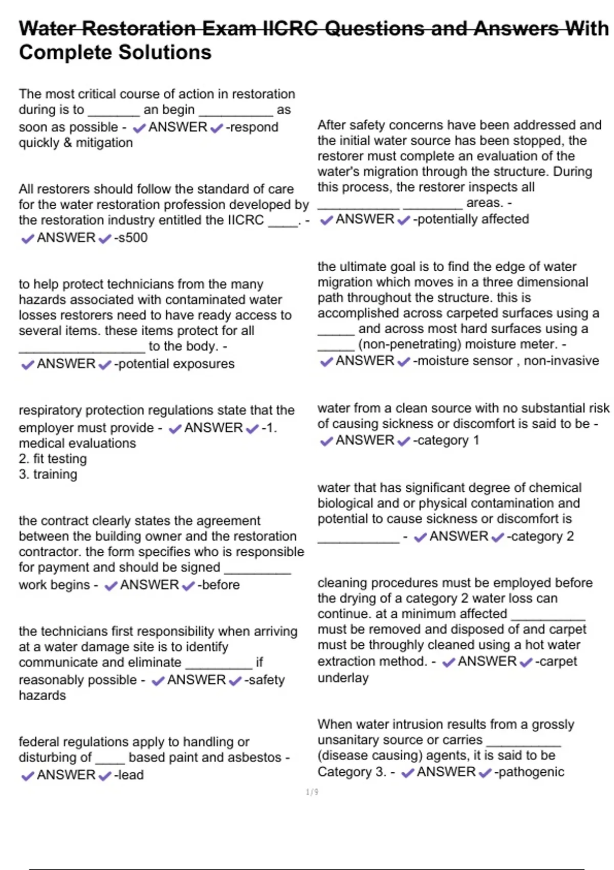 Water Restoration Exam IICRC Questions and Answers With