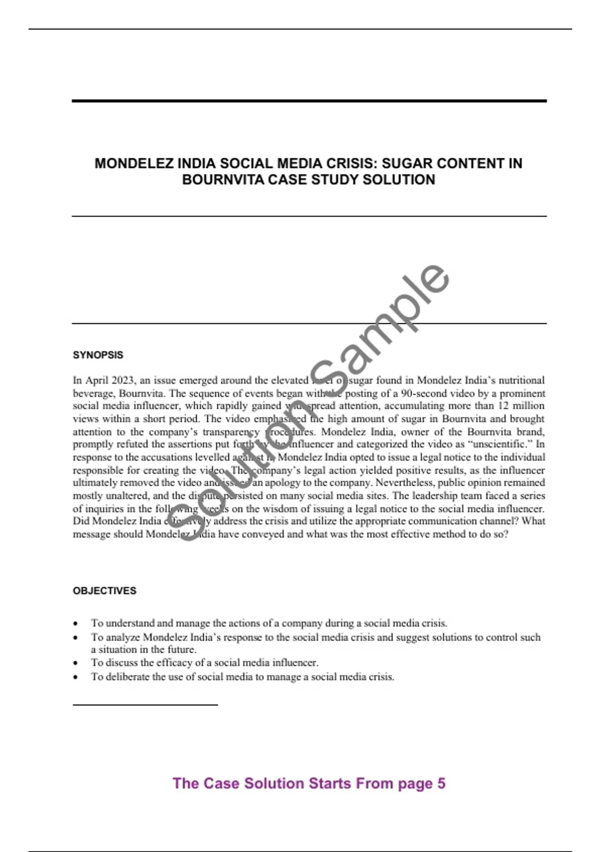 Get the Mondelez India Social Media Crisis Sugar Content in Bournvita Case Study Solution and Analysis by Bikramjit Rishi, Pinaki Pattnaik, Satyendra C Pandey | Case ID: W36988. We guarantee that this case solution is 100% original, official, and not AI-generated. It is a plagiarism-free, complete, and well-structured solution, perfect for exam preparation, assignments, and research.
