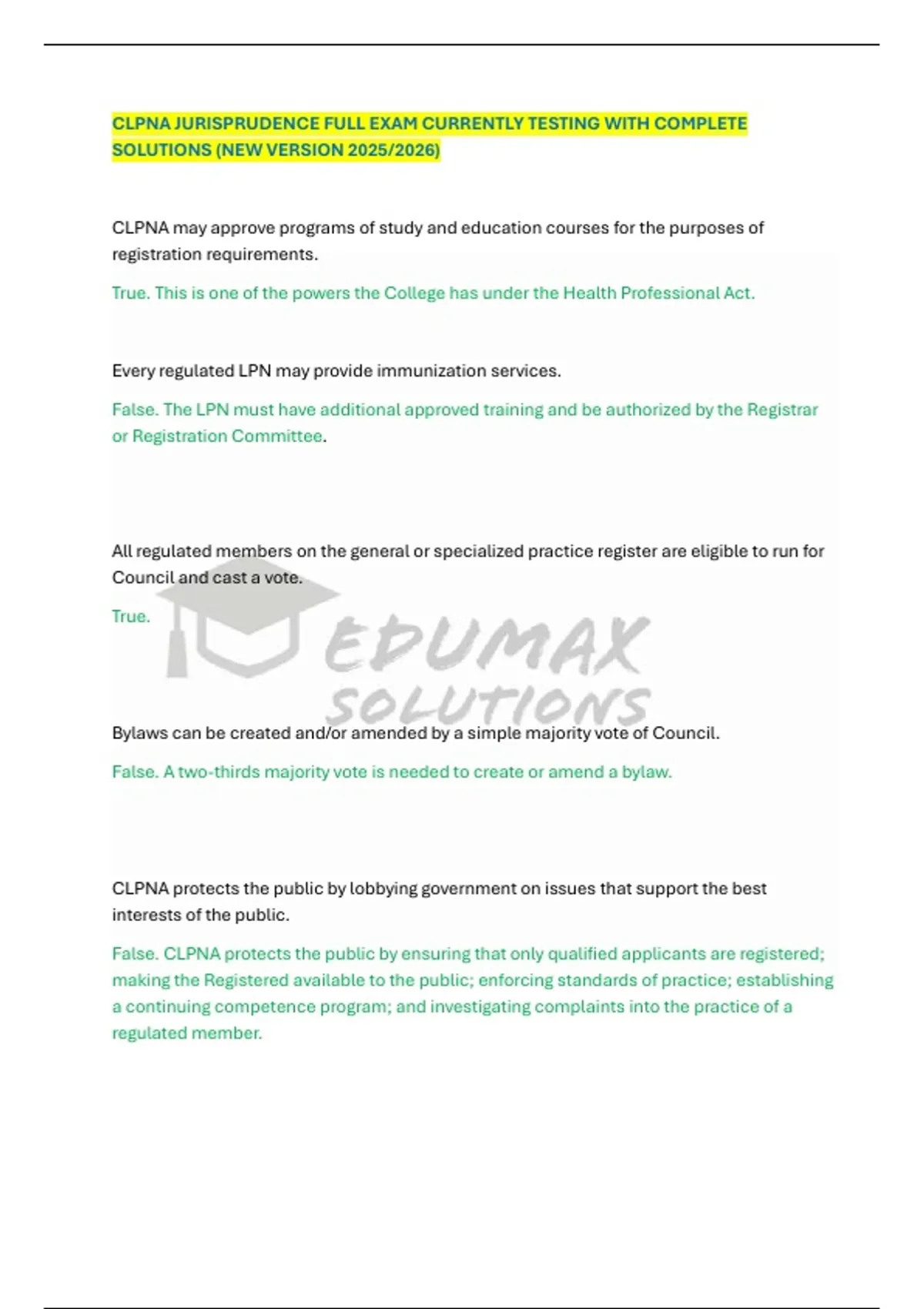 CLPNA JURISPRUDENCE FULL EXAM CURRENTLY TESTING WITH COMPLETE