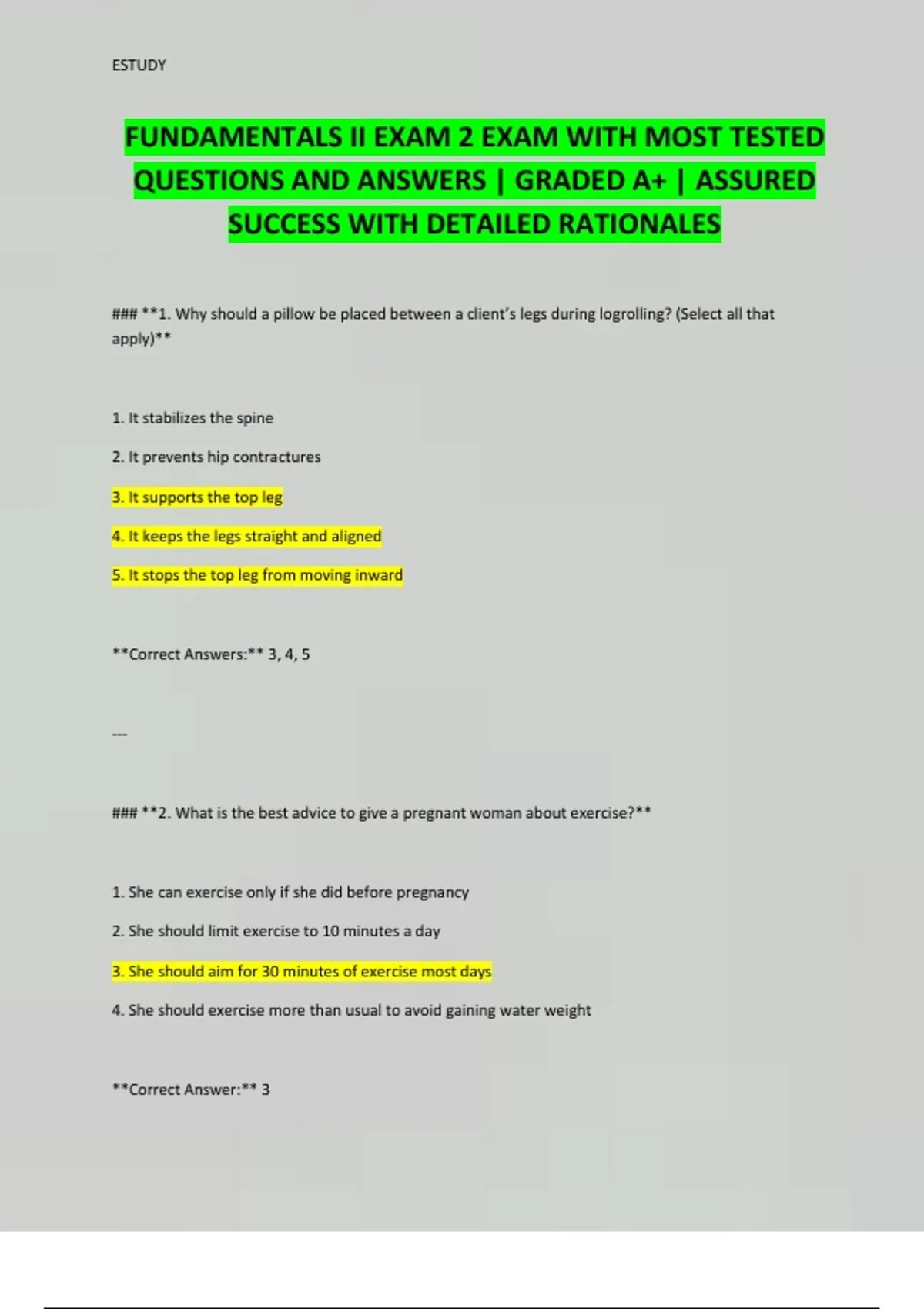 FUNDAMENTALS II EXAM 2 EXAM WITH MOST TESTED