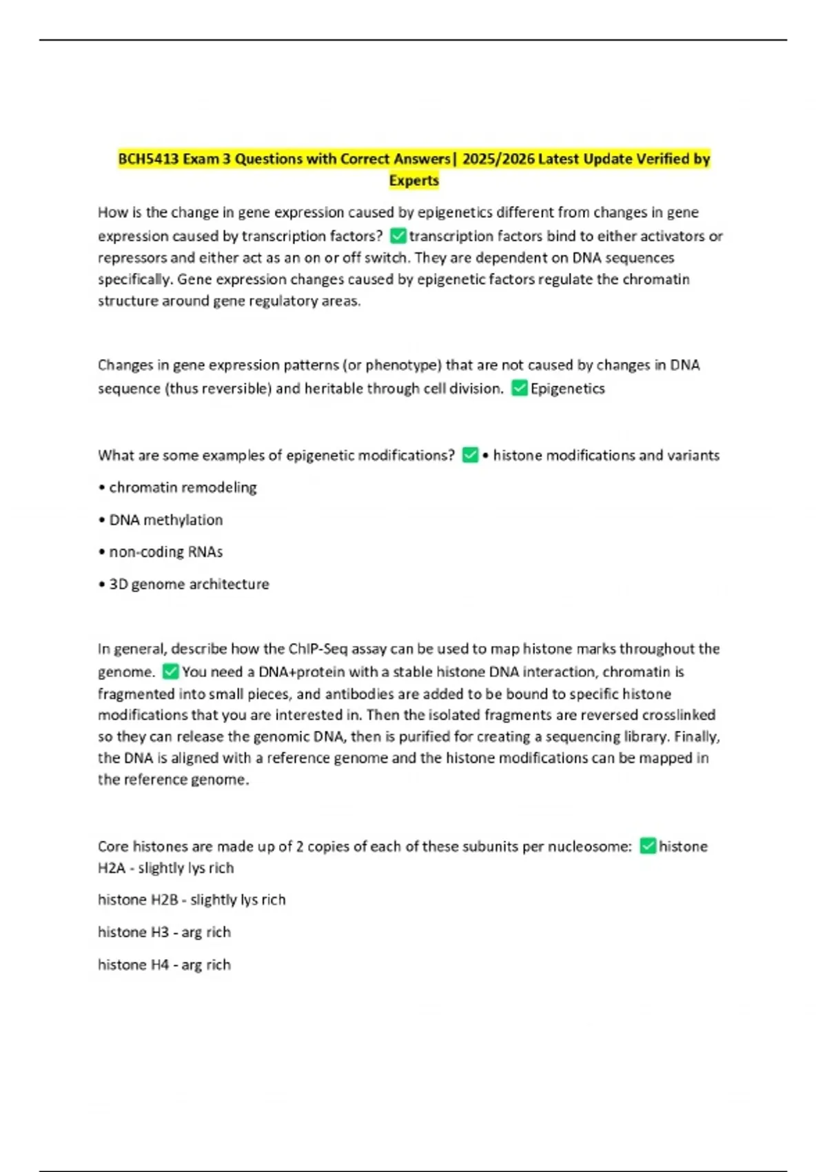 BCH5413 Exam 3 Questions with Correct Answers| 2025/2026 Latest Update Verified by Experts