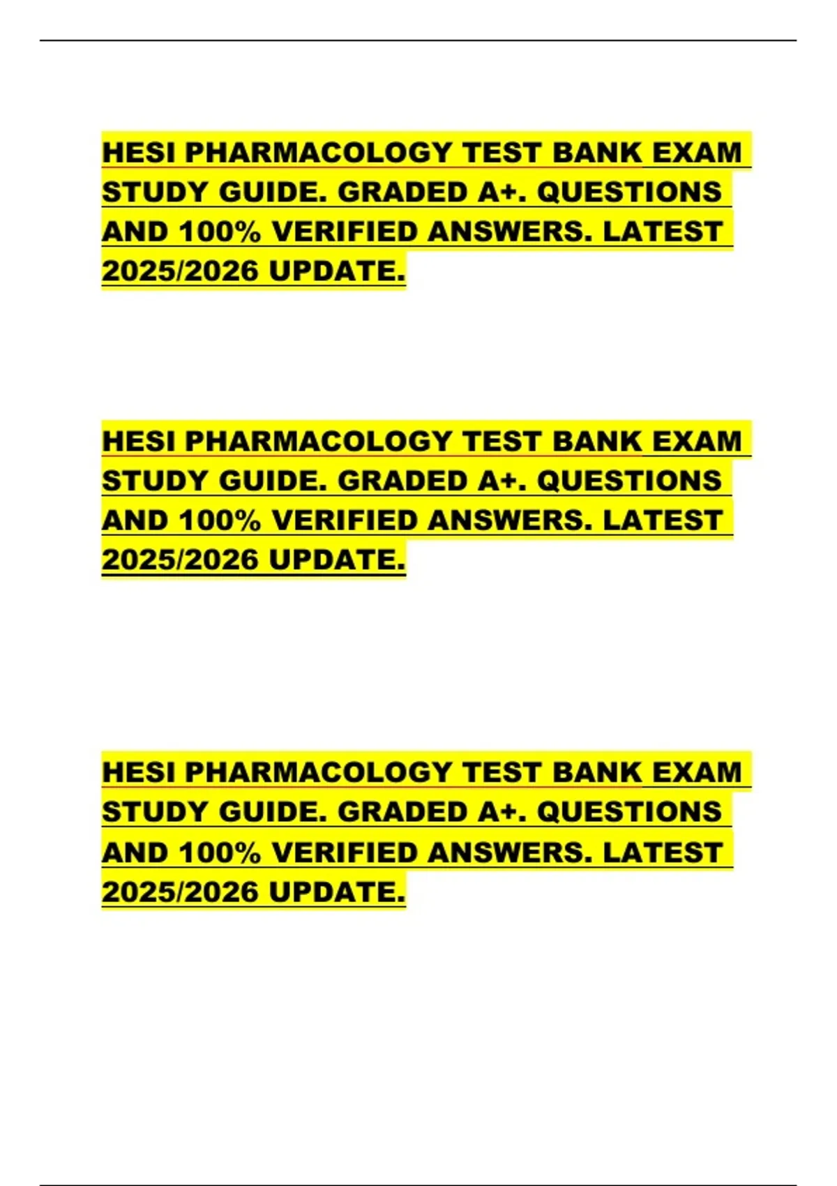 HESI PHARMACOLOGY TEST BANK EXAM