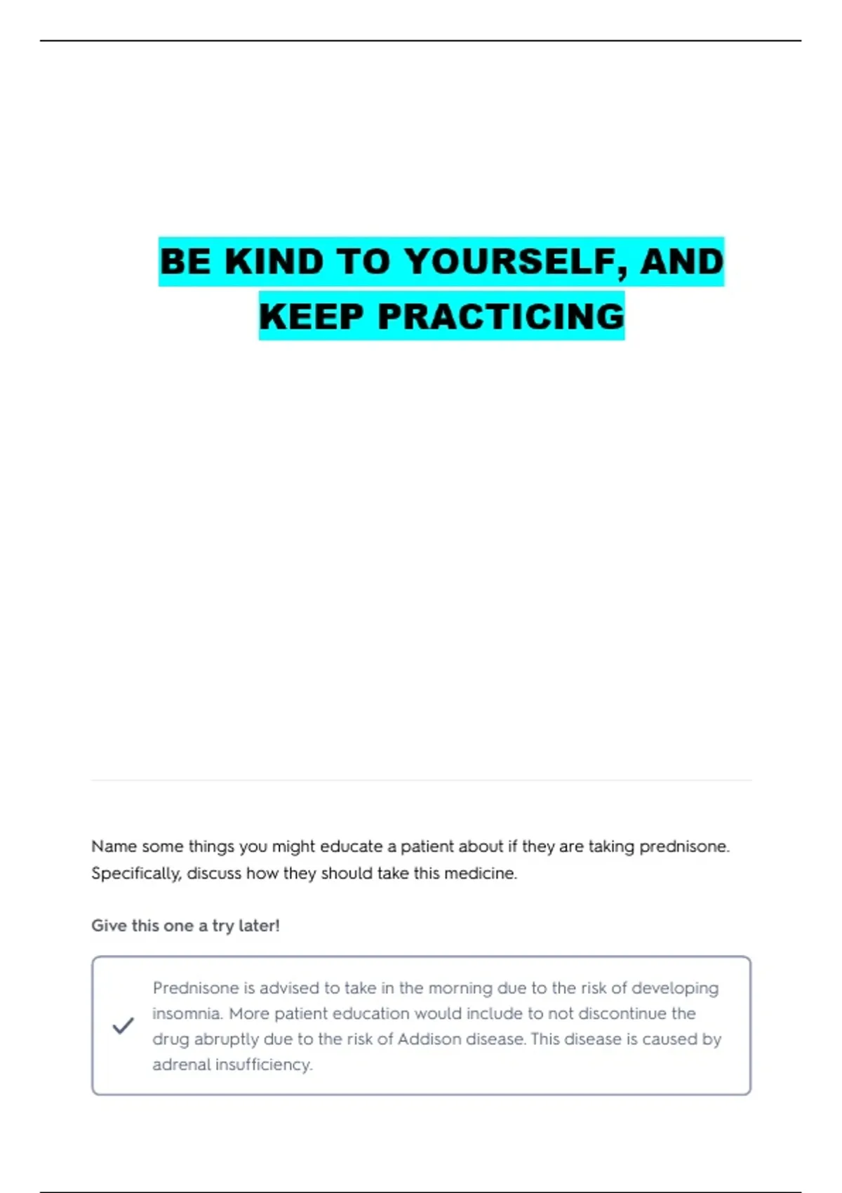 Name some things you might educate a patient about if they are taking prednisone.