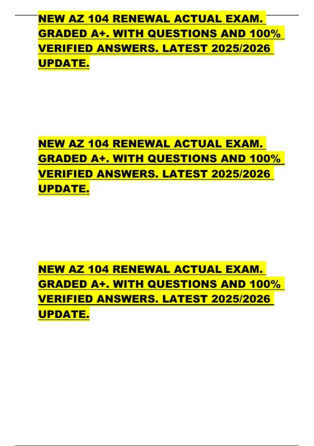 NEW AZ 104 RENEWAL ACTUAL EXAM.