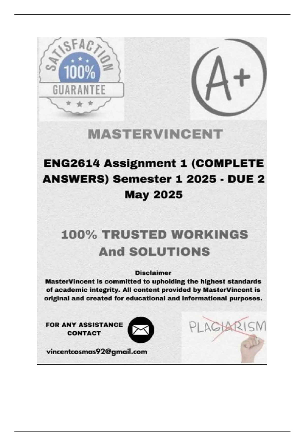 Semester 1 2025 - DUE 2 May 2025; 100% correct solutions