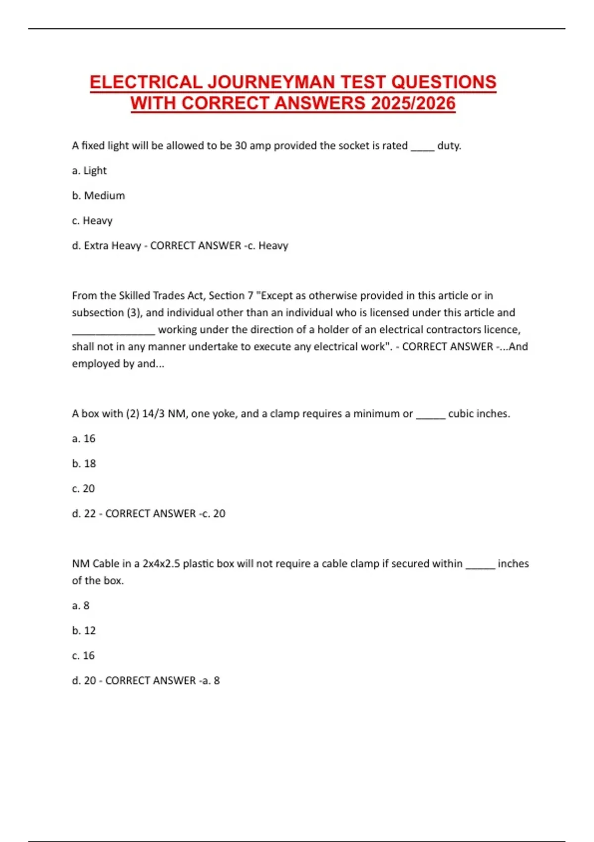 ELECTRICAL JOURNEYMAN TEST QUESTIONS WITH CORRECT ANSWERS 2025/2026