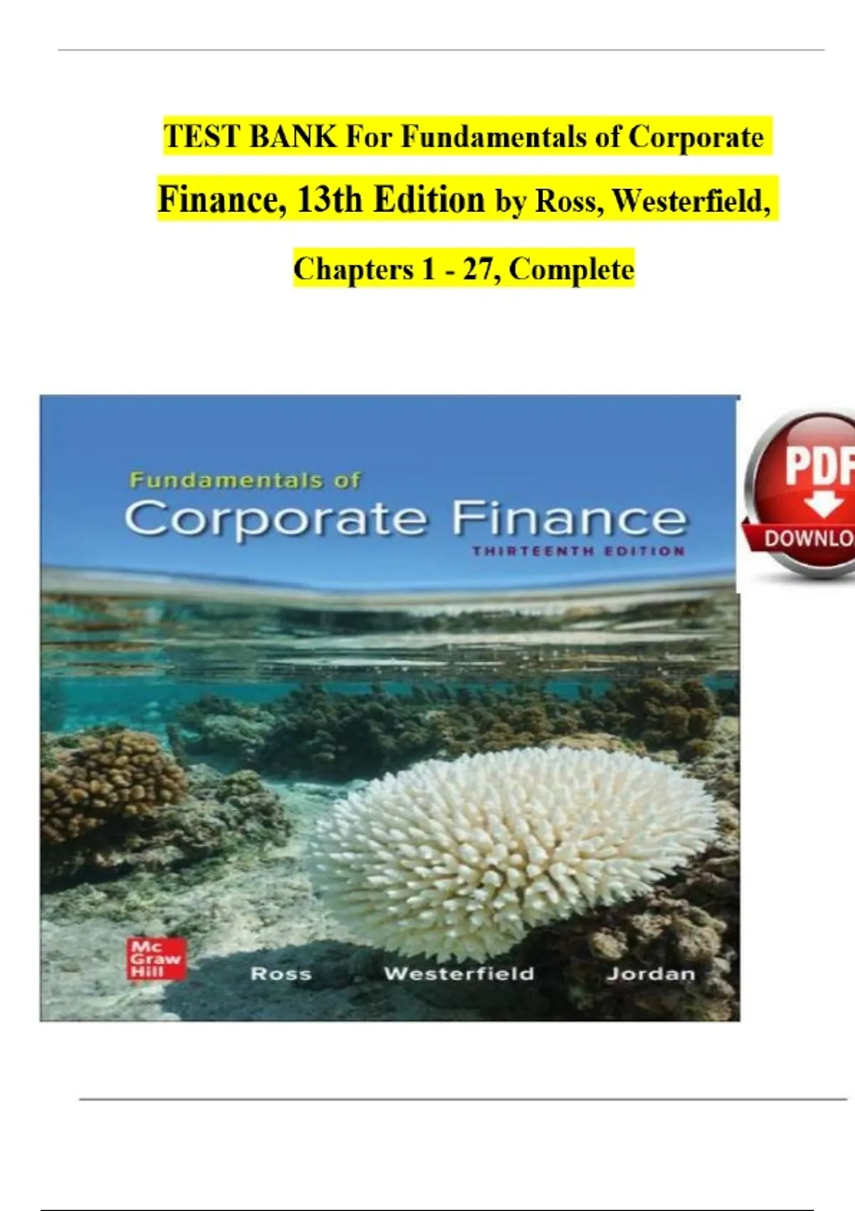 TEST BANK For Fundamentals of Corporate Finance, 13th Edition by Ross, Westerfield, Chapters 1 - 27, Complete