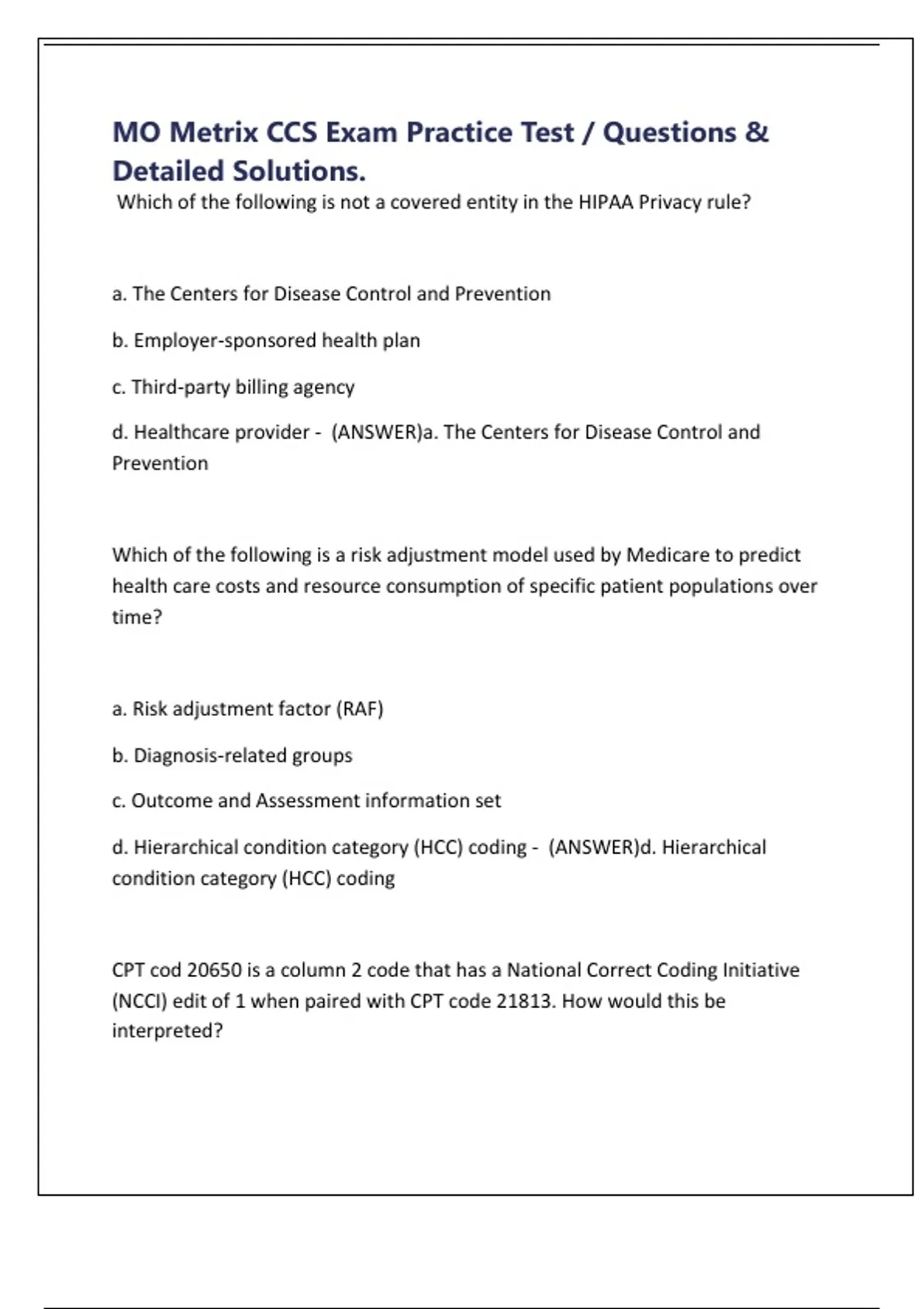 MO Metrix CCS Exam Practice Test / Questions & Detailed Solutions.