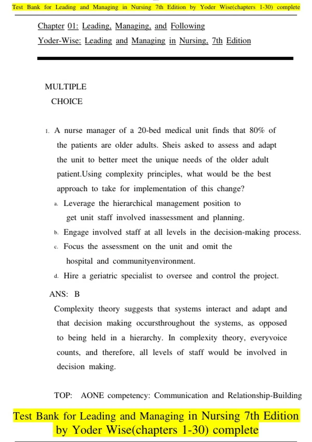 Test xxBank xxfor xxLeading xxand xxManaging xxin xxNursing xx7th xxEdition xxby xxYoder xxWise(chapters xx1-30) xxcomplete
