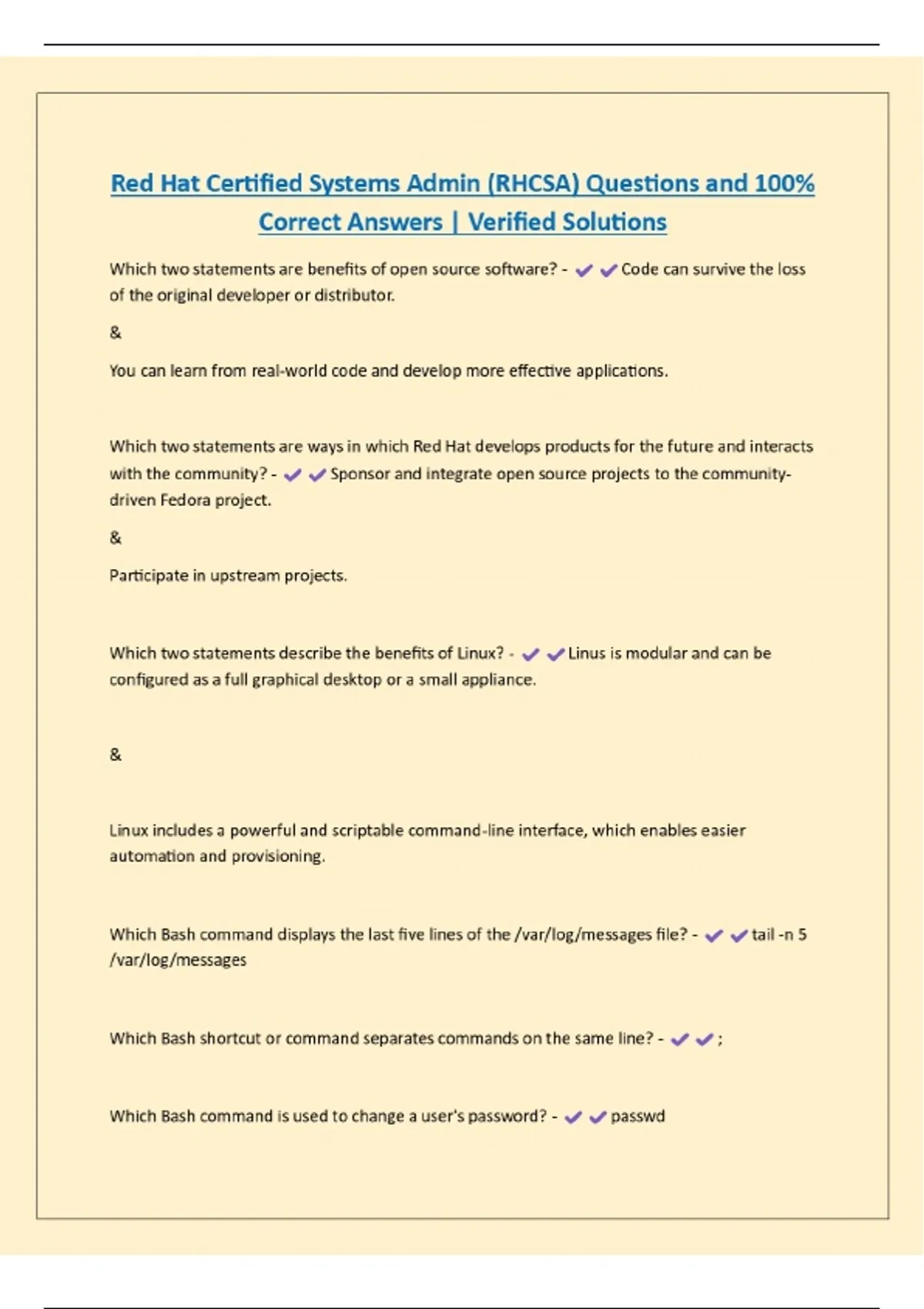 Red Hat Certified Systems Admin (RHCSA) Questions and 100% Correct Answers | Verified Solutions