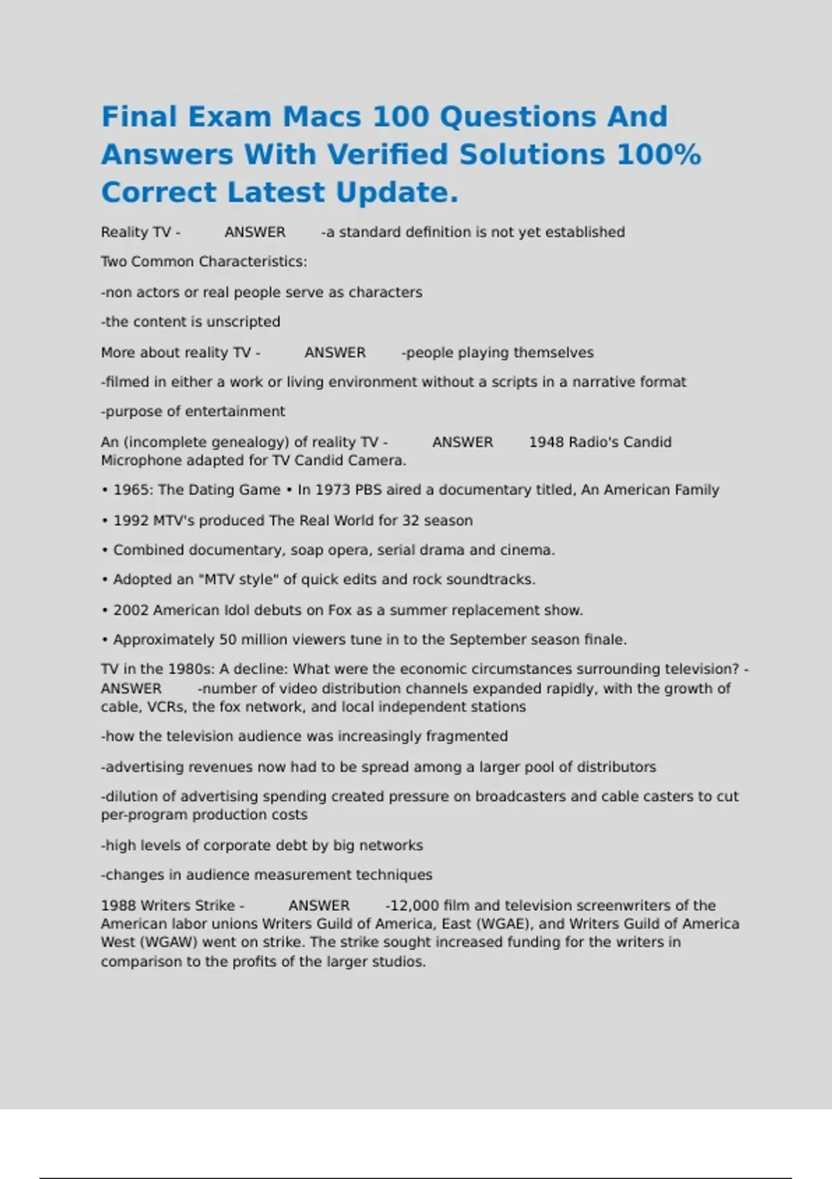 Final Exam Macs 100 Questions And Answers With Verified Solutions 100% Correct Latest Update.
