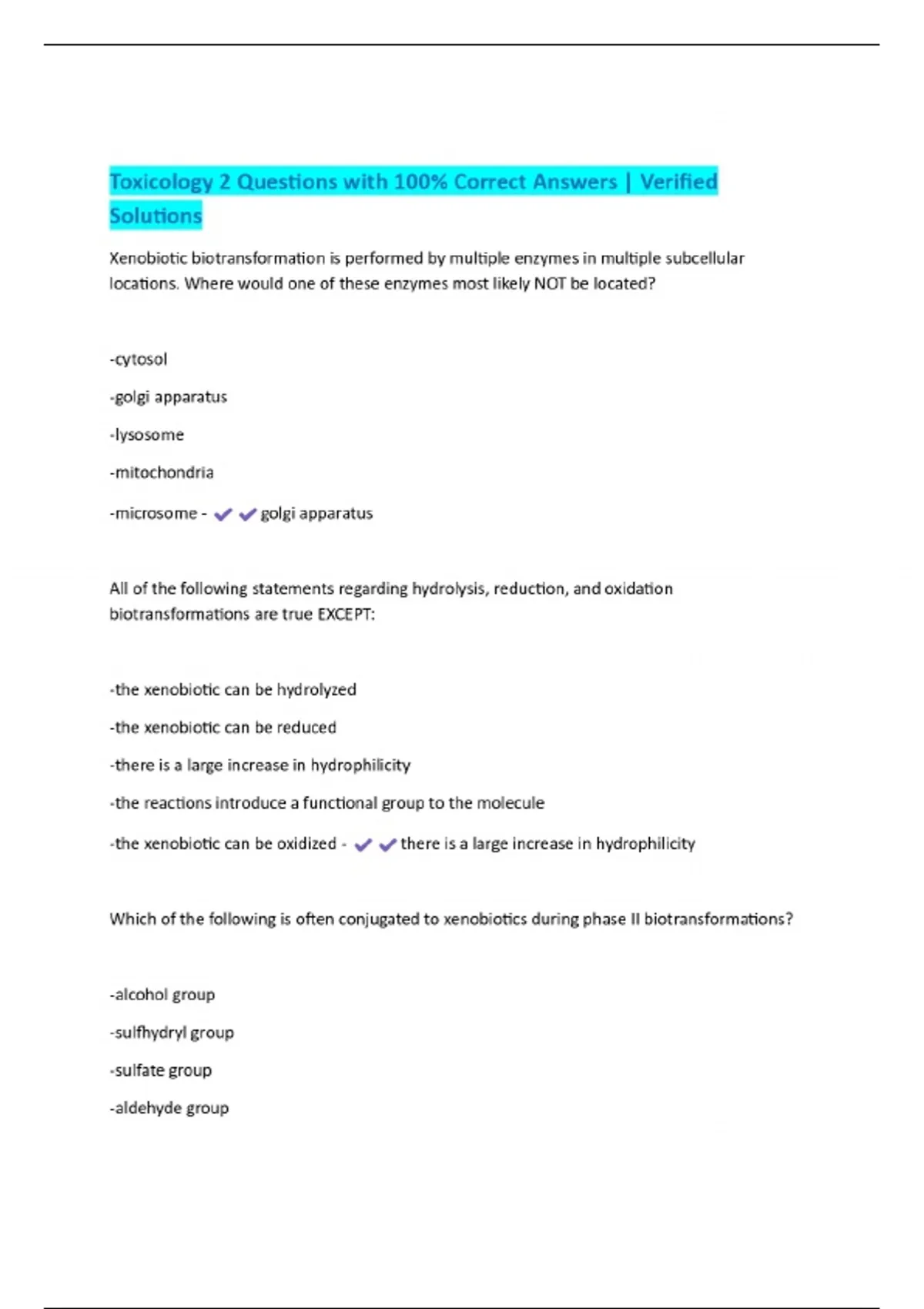 Toxicology 2 Questions with 100% Correct Answers | Verified Solutions