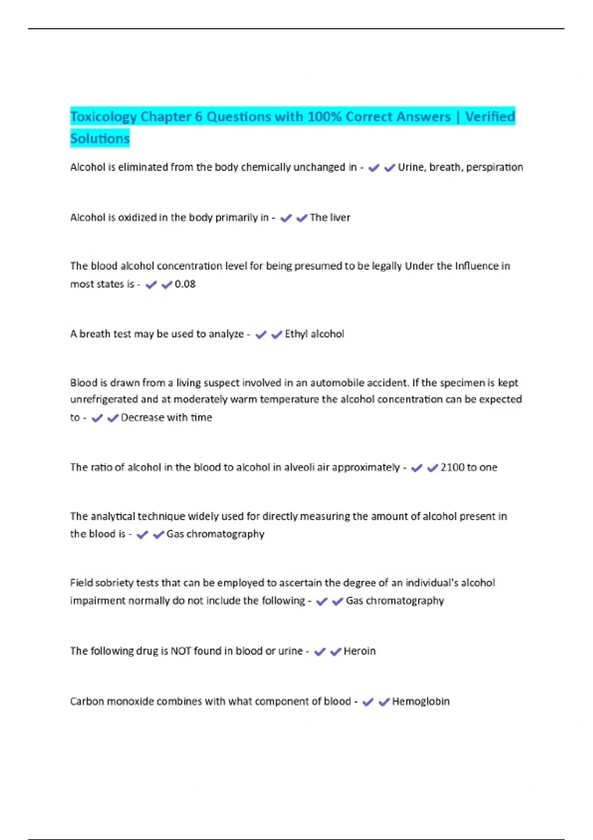 Toxicology Chapter 6 Questions with 100% Correct Answers | Verified Solutions