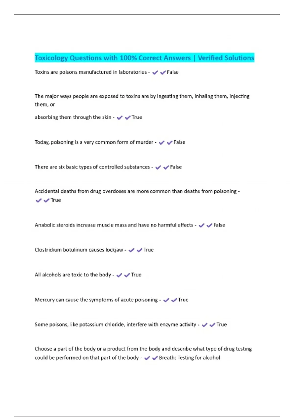 Toxicology Questions with 100% Correct Answers | Verified Solutions