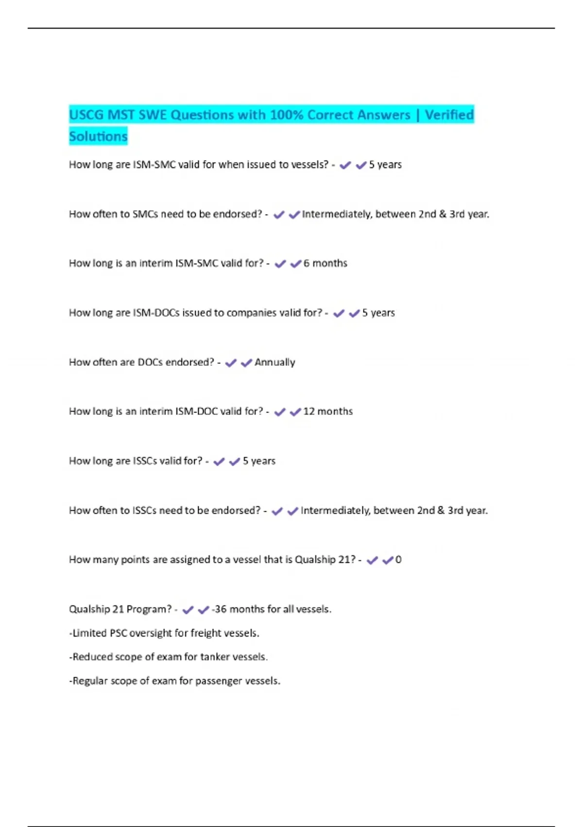 USCG MST SWE Questions with 100% Correct Answers | Verified Solutions