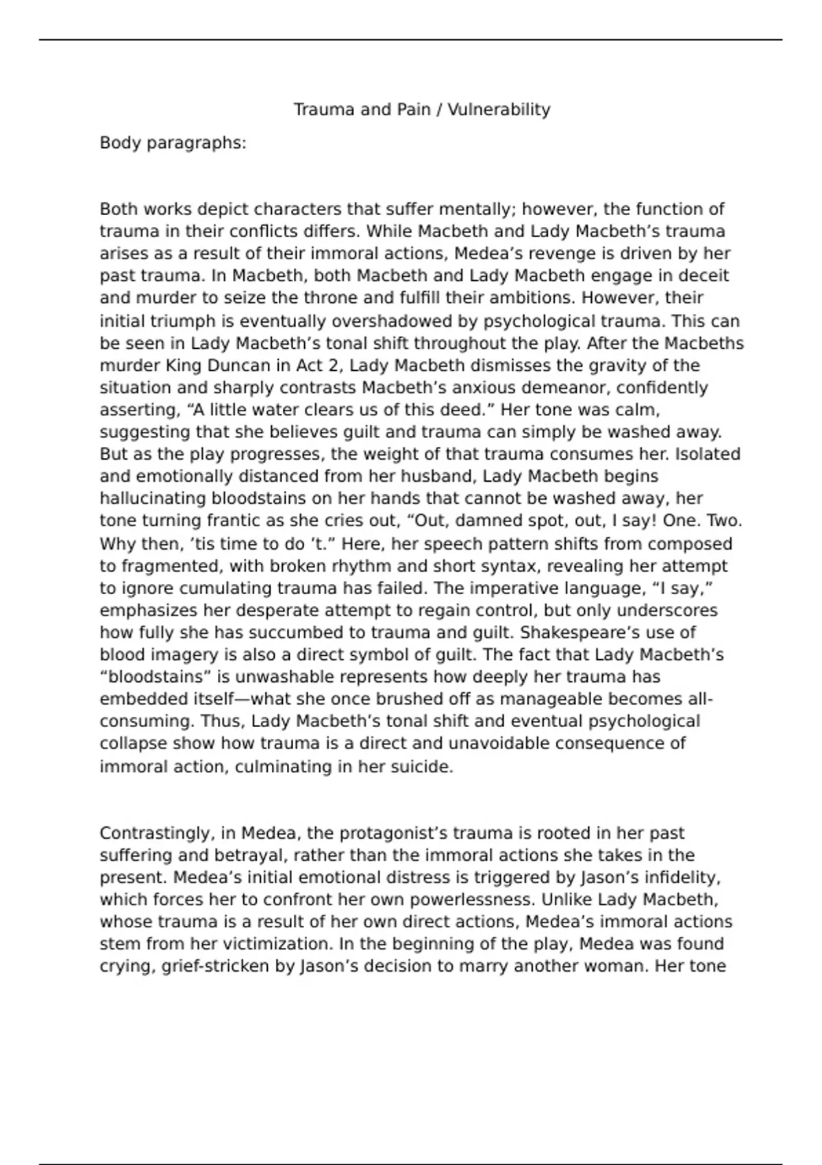 trauma in their conflicts differs. While Macbeth and Lady Macbeth’s trauma