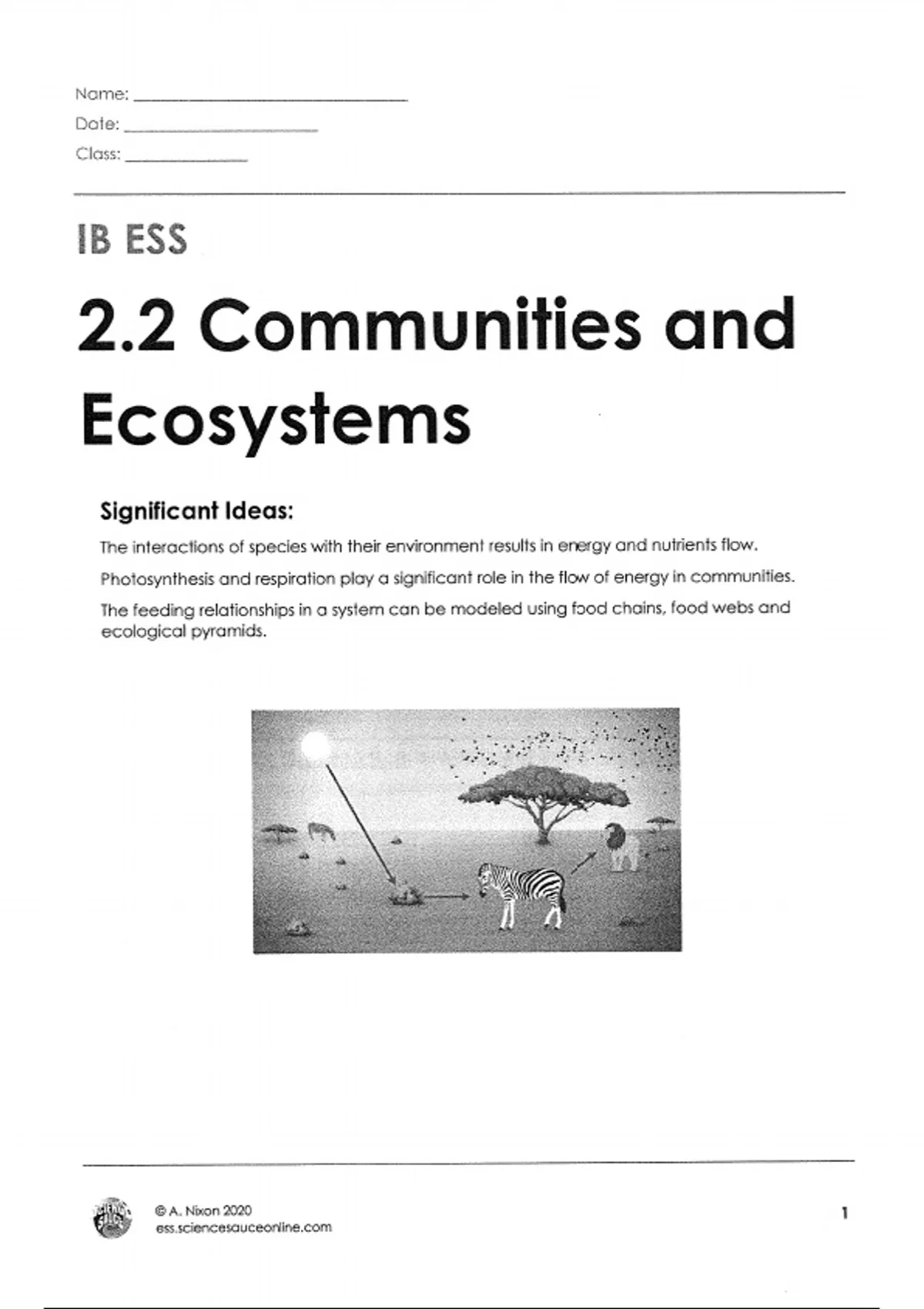 Significant Ideas: The interactions of species with their environment results in energy and nutrients flow. Photosynthesis and respiration play a significant role in the flow of energy in communities. The feeding relationships in a system can be modeled using food chains, food webs and ecological pyramids.