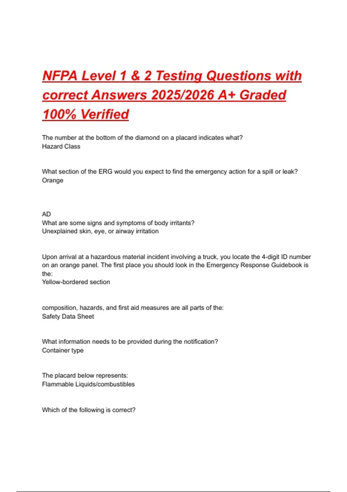NFPA Level 1 & 2 Testing Questions with