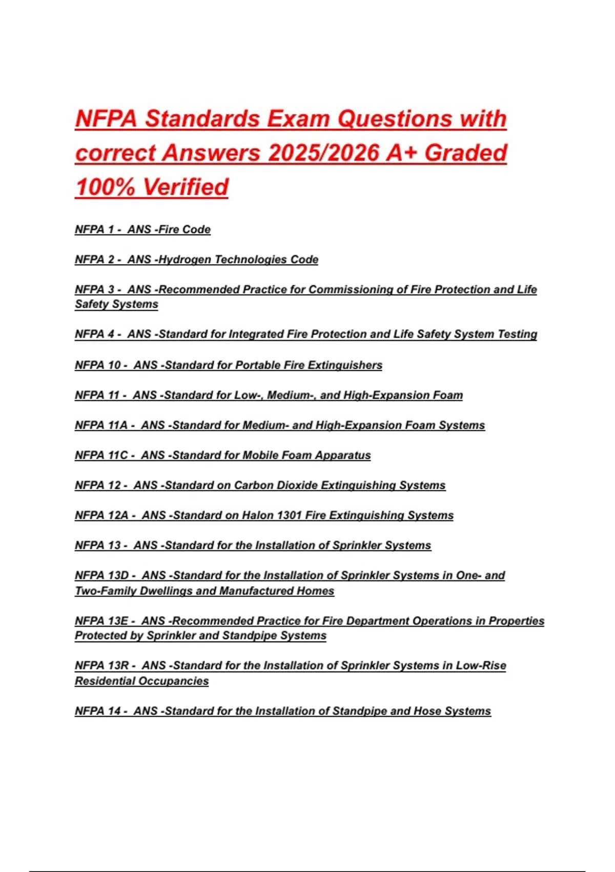 NFPA Standards Exam Questions with