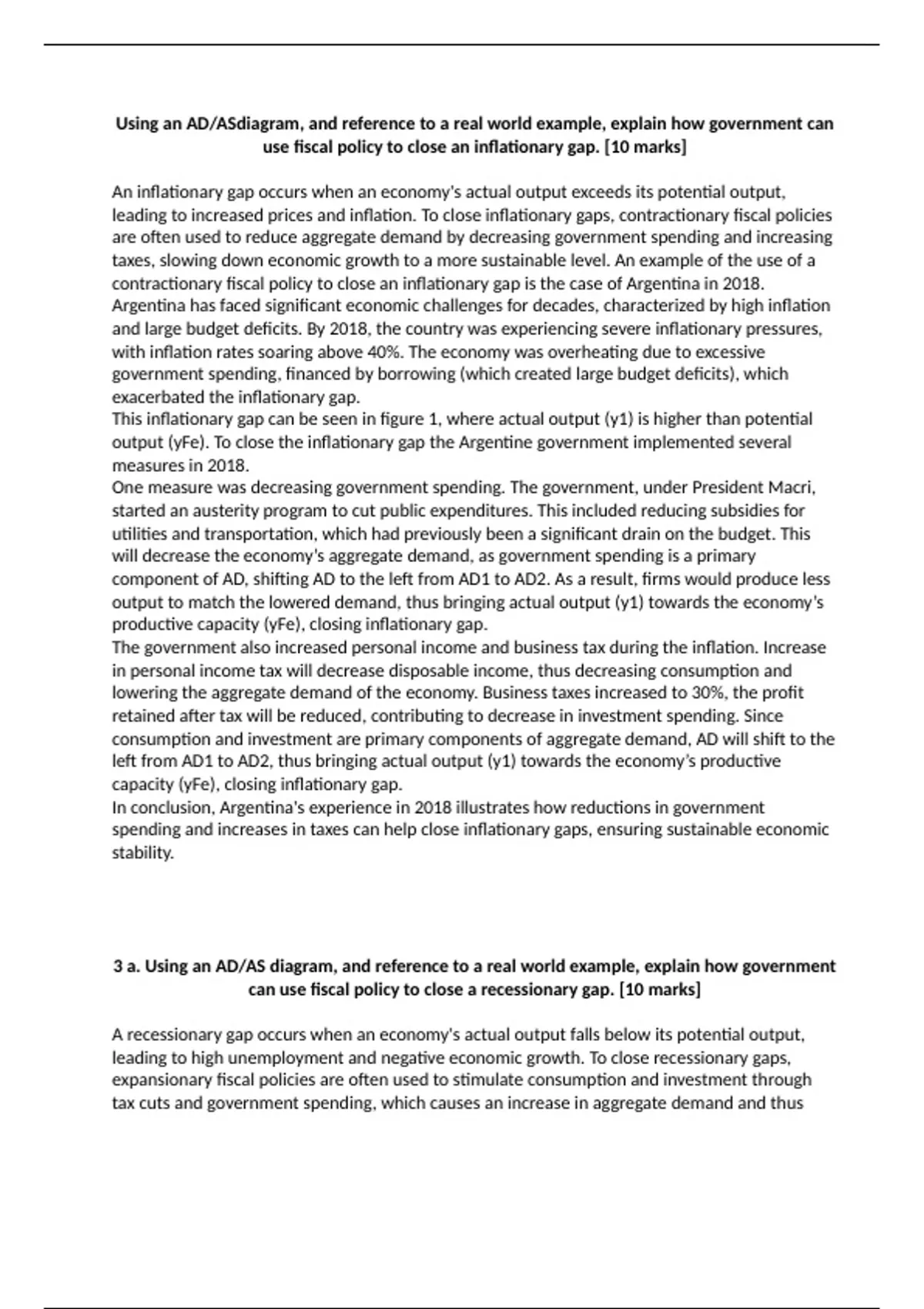 can use fiscal policy to close a recessionary gap. [10 marks]