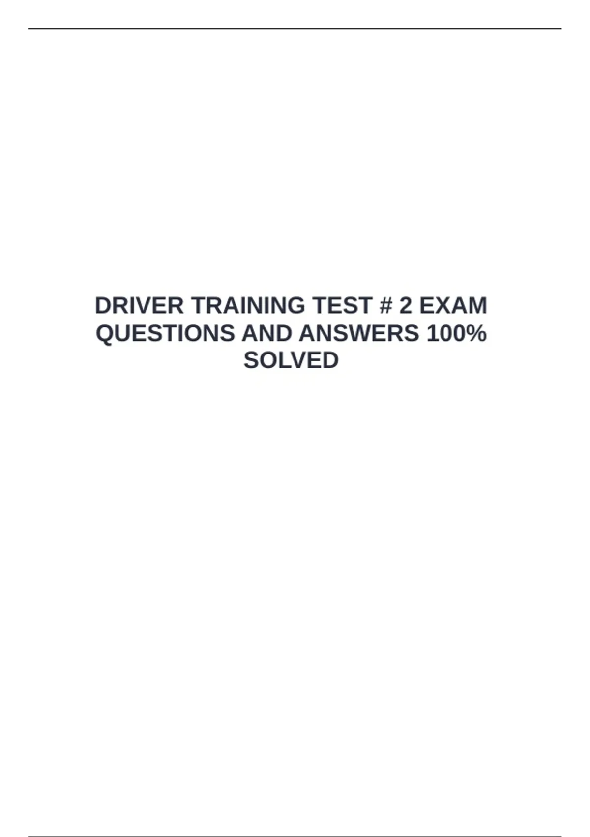 DRIVER TRAINING TEST # 2 EXAM QUESTIONS AND ANSWERS 100% SOLVED
