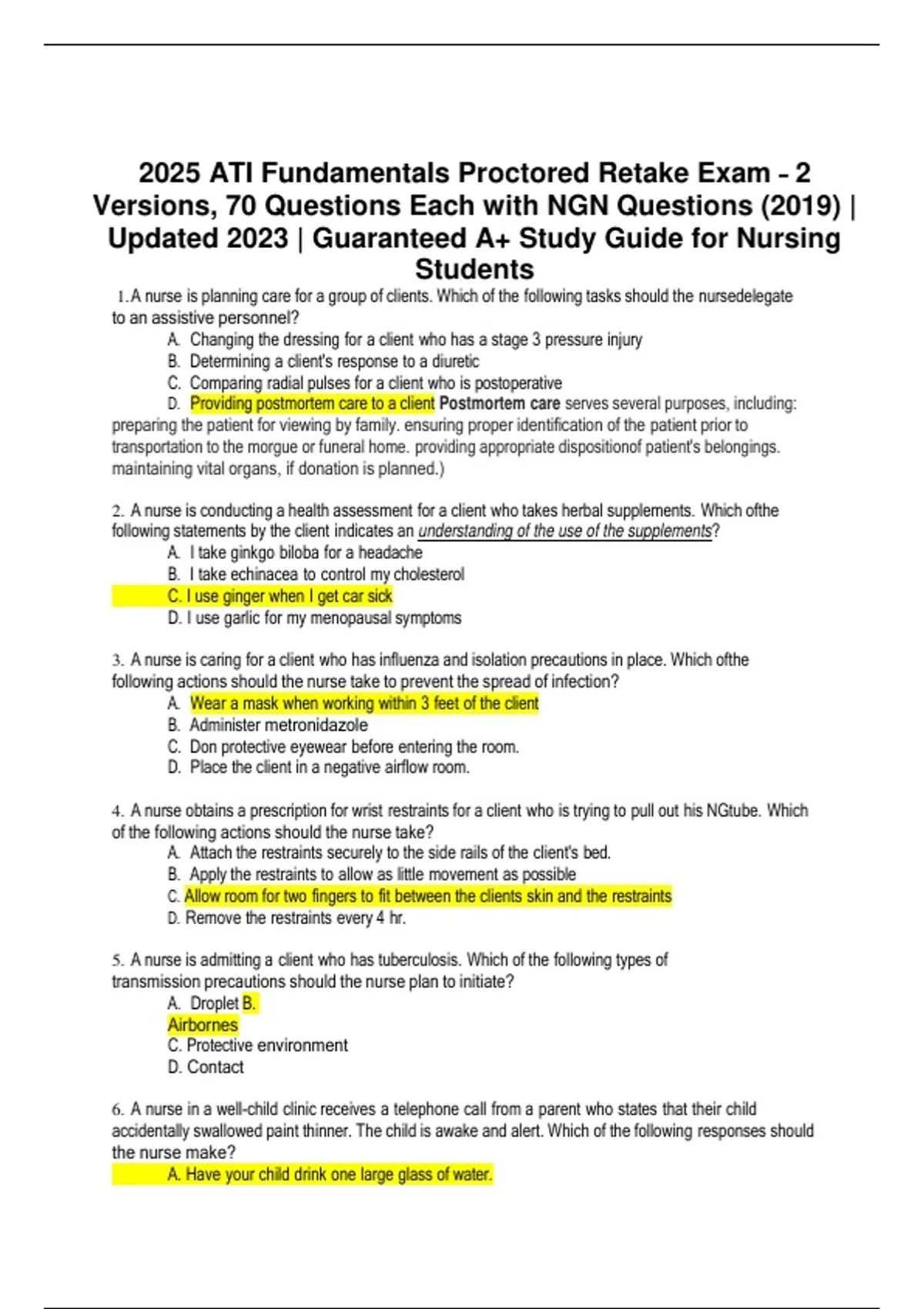 2023 ATI FUNDAMENTALS PROCTORED RETAKE EXAM 2 Questions with correct and verified answers with well elaborate rationale