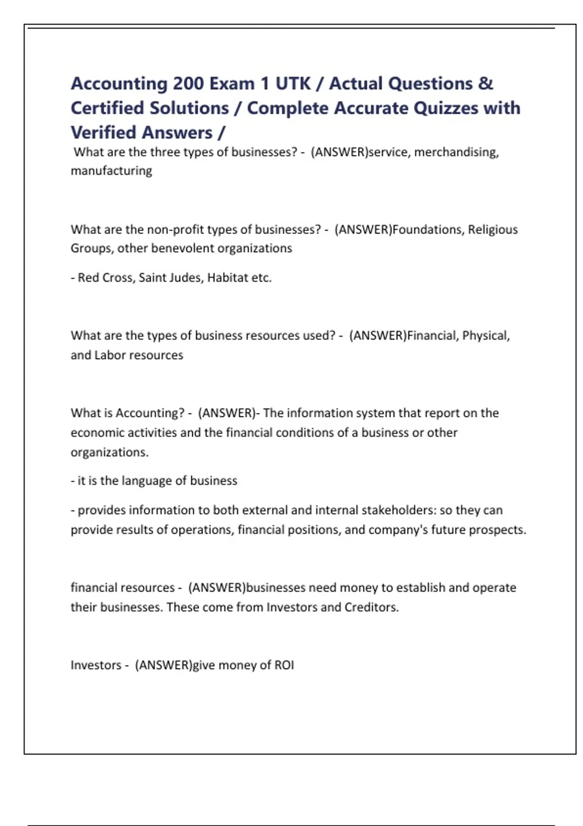 Accounting 200 Exam 1 UTK / Actual Questions &
