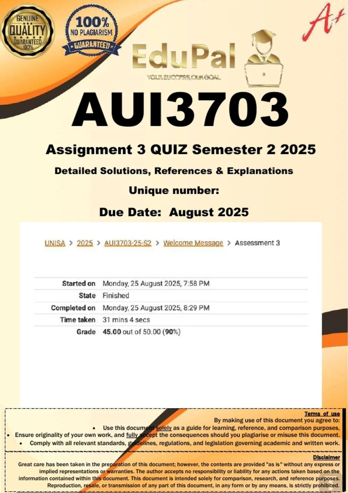 AUI3703 Assignment 3 (COMPLETE ANSWERS) Semester 2 2025 - DUE September 2025; 100% TRUSTED Complete, trusted solutions and explanations. For assistance, Whats-App 0.6.7-1.7.1-1.7.3.9. Ensure your success with us....