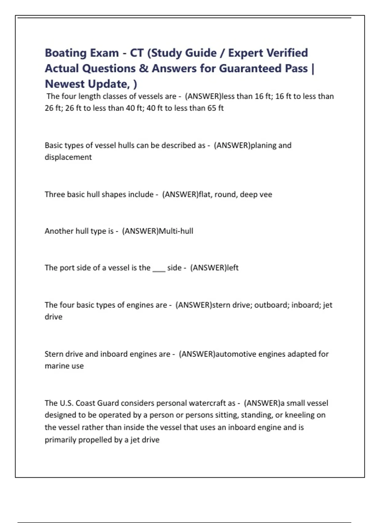 The four basic types of engines are - (ANSWER)stern drive; outboard; inboard; jet