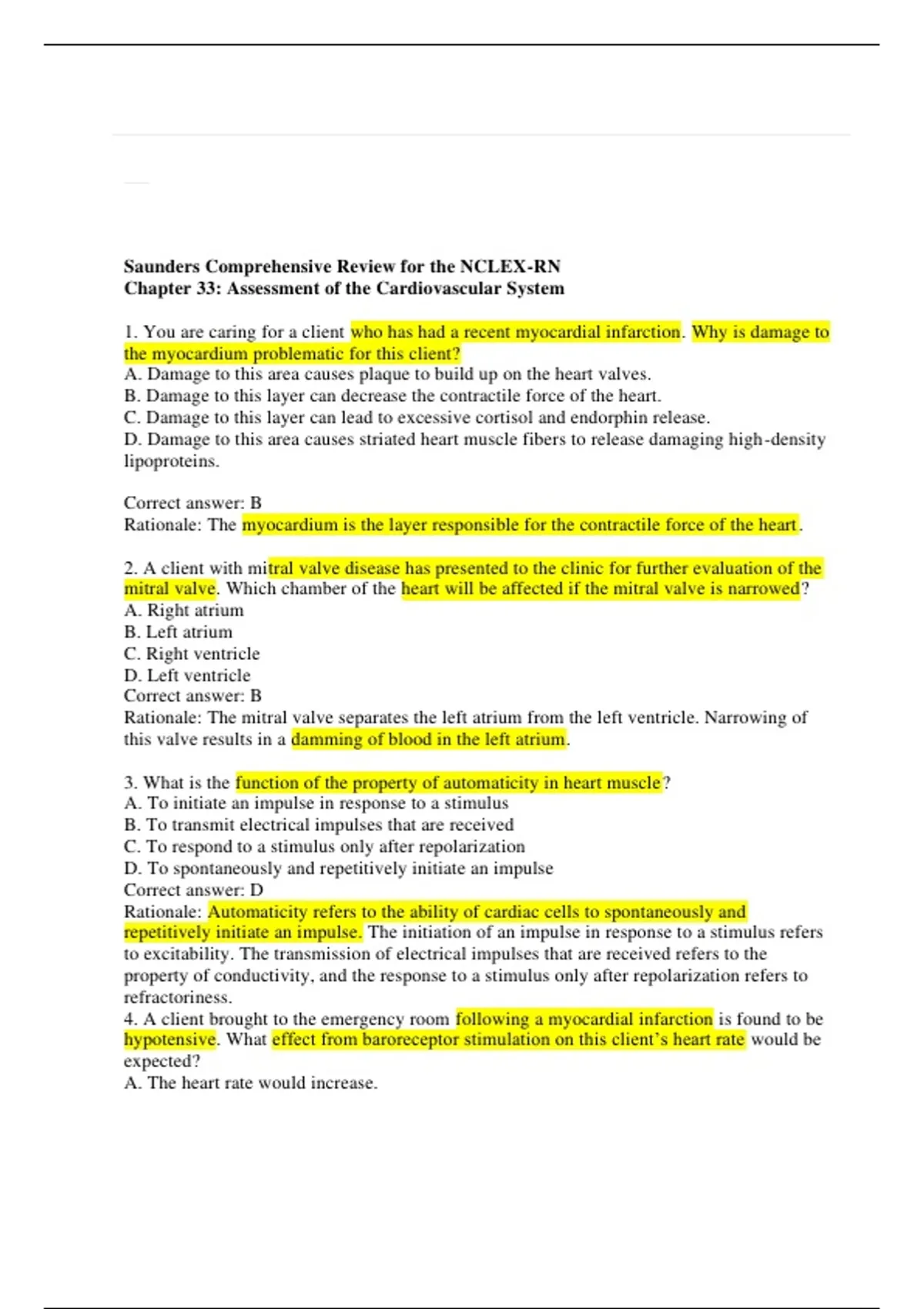 1. You are caring for a client who has had a recent myocardial infarction. Why is damage to