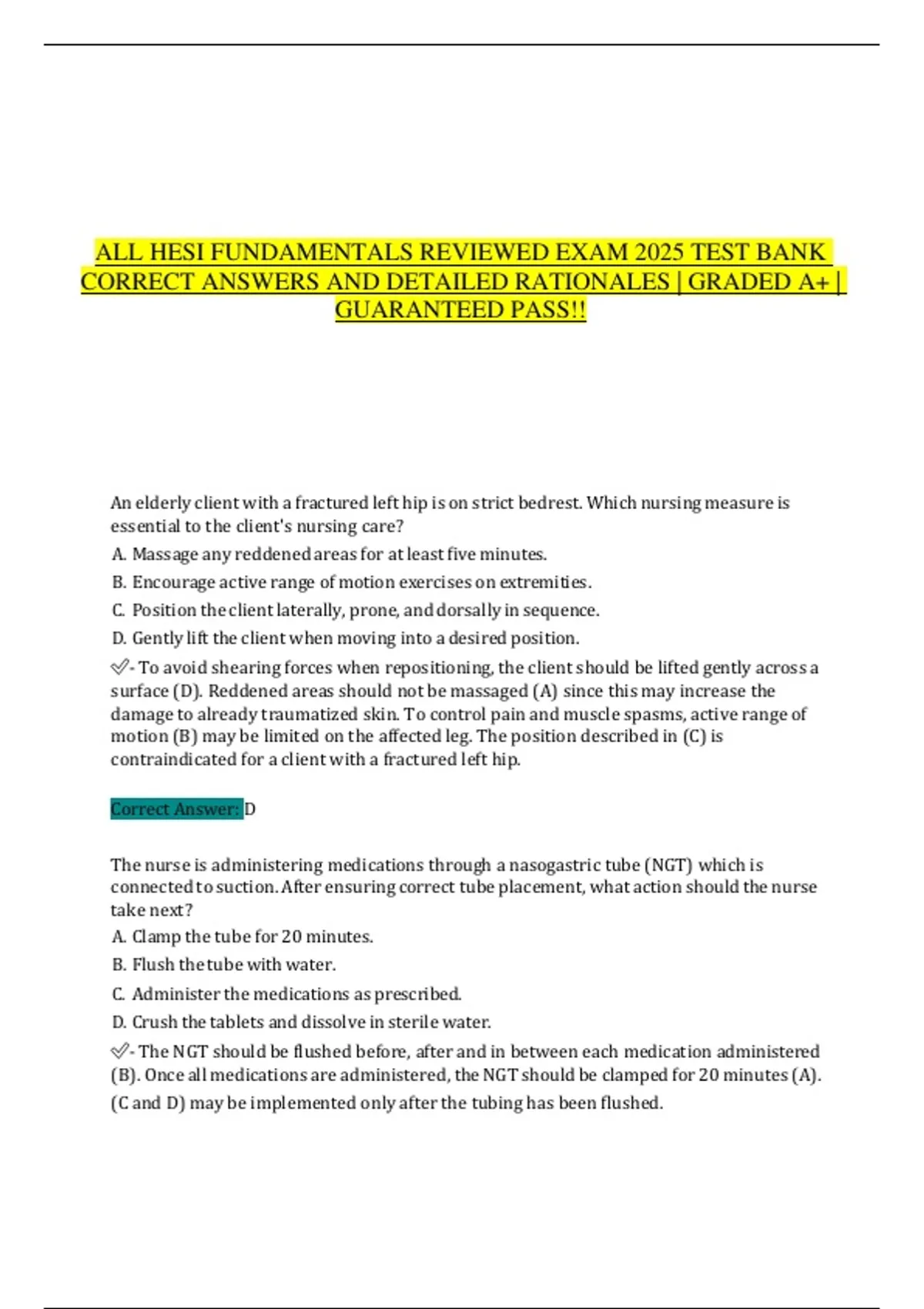 CORRECT ANSWERS AND DETAILED RATIONALES | GRADED A+ |