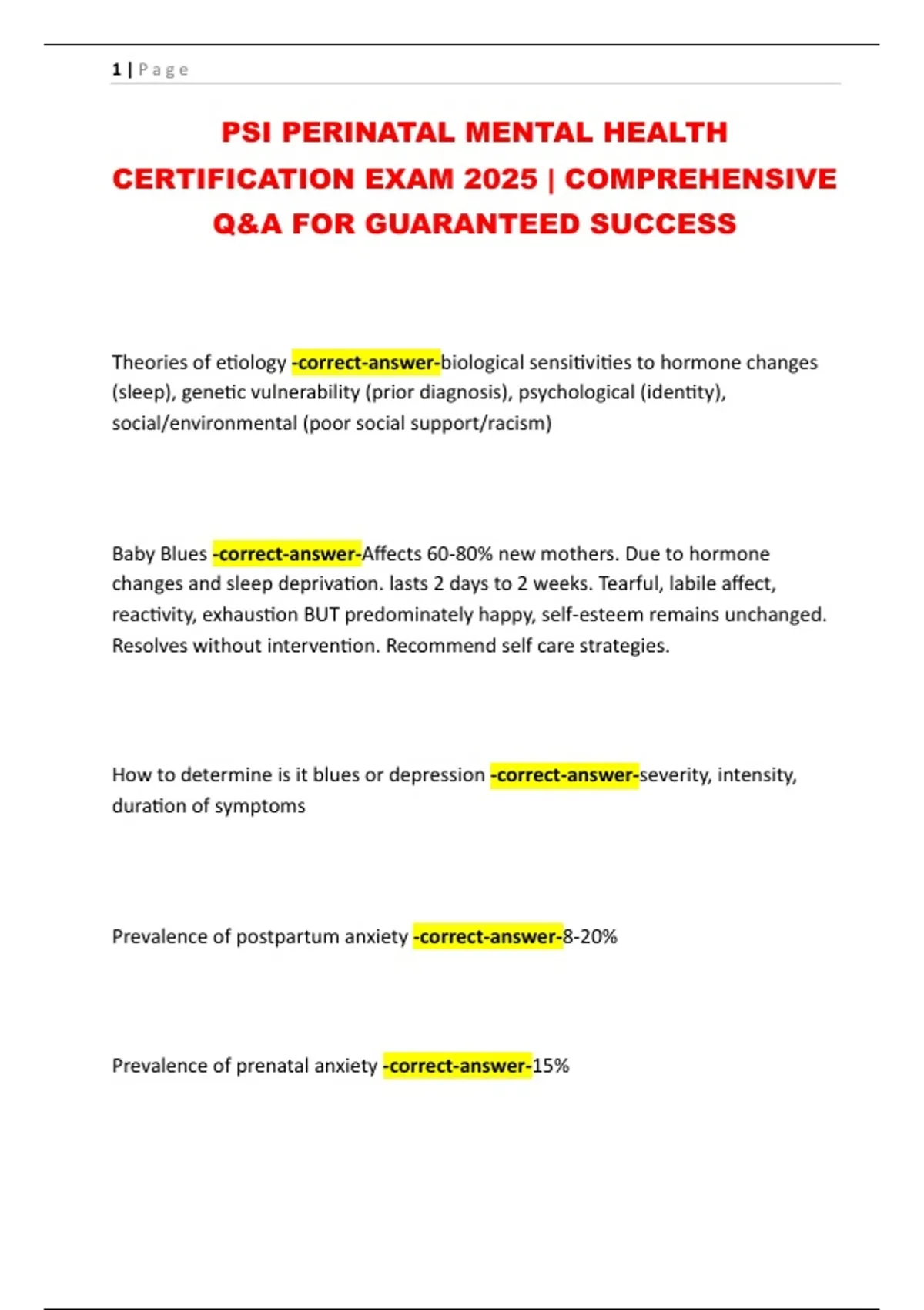PSI PERINATAL MENTAL HEALTH CERTIFICATION EXAM 2025 | COMPREHENSIVE Q&A FOR GUARANTEED SUCCESS