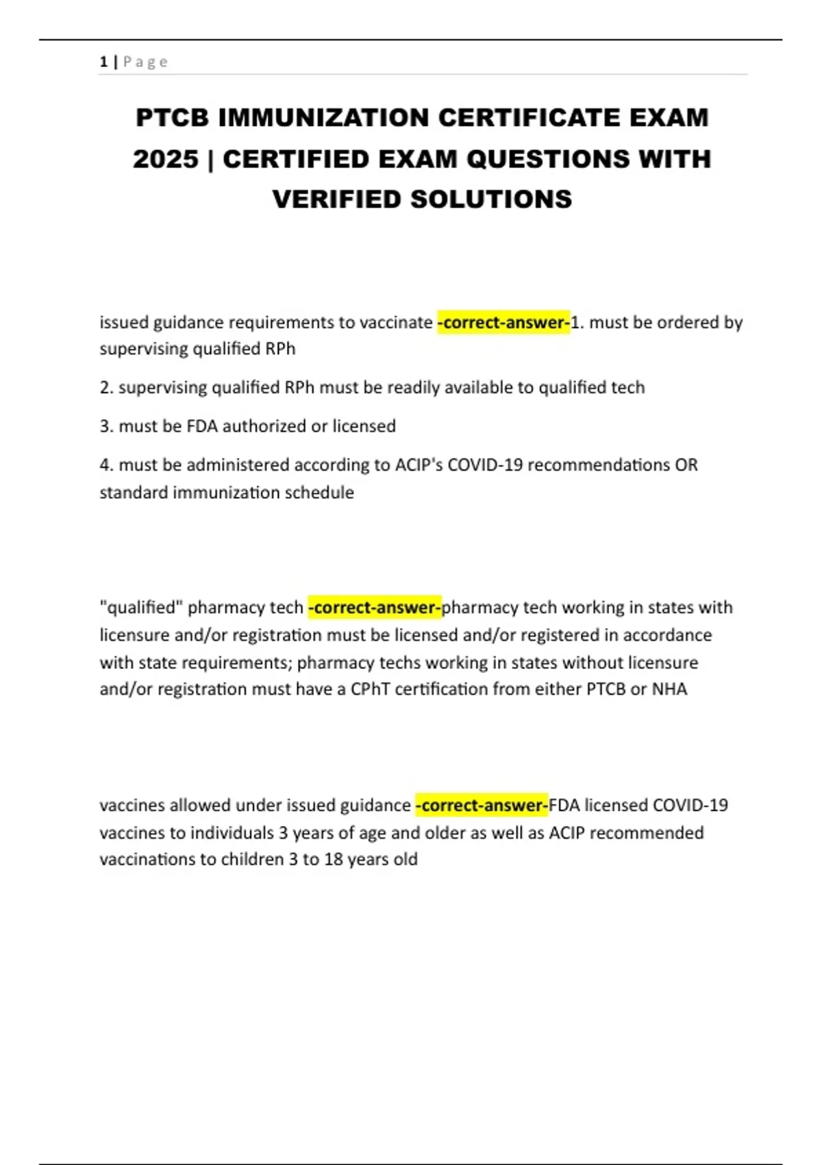 PTCB IMMUNIZATION CERTIFICATE EXAM 2025 | CERTIFIED EXAM QUESTIONS WITH VERIFIED SOLUTIONS